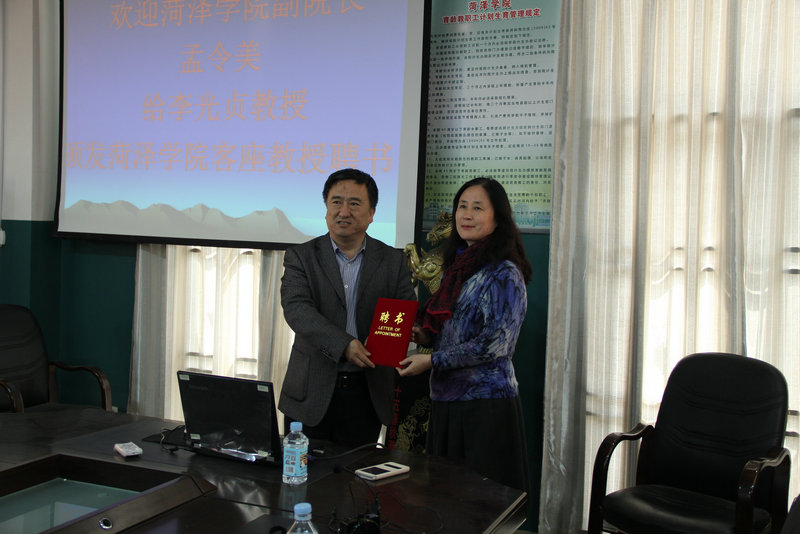 2015年4月16日下午,中国日语教学研究会山东分会会长、山东师范大学日语系主任、博士生导师李光贞教授应邀做客伟德victor1946外国语系,为日语专业全体师生进行了一场题为“日语专业学生的学习及未来职业选择”的专题讲座并被聘为我校客座教授,孟令美副院长颁发了证书并致以欢迎词。