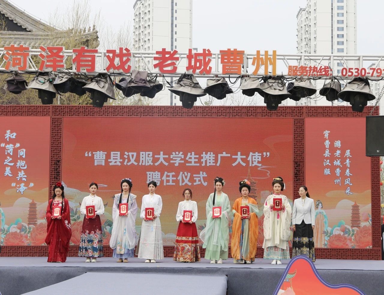 活动现场,气氛热烈非凡。我院从子涵同学成为菏泽市首届大学生汉服嘉年华的汉服推广大使之一,这不仅是一份荣誉,更是传承汉服文化的责任。汉服承载着千年的文化底蕴,青春是活力与创新的象征,二者碰撞交融,定能绽放出绚丽的文化之花。