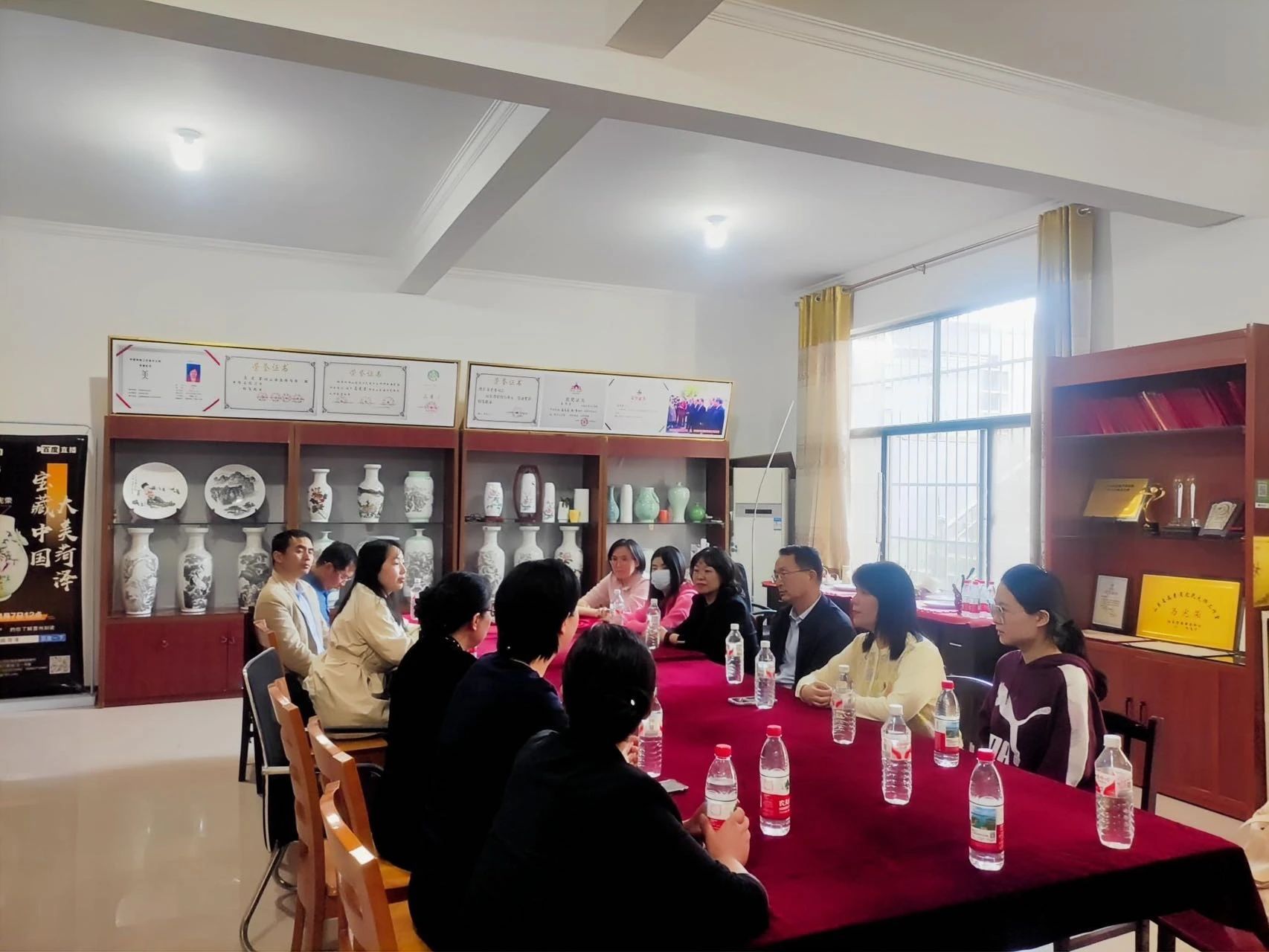 最后,党员教师参观了马老师的工作室,并与马老师进行了深入的交流。艺术馆中陈列的不仅有马宪荣老师毕生的刻瓷及麦秆画作品,还有各级报道、各界艺术家赠与马老师的书画作品以及马老师所获得的各种荣誉。这些资料又一次让大家惊叹不已,也再次受到了精神的洗礼。