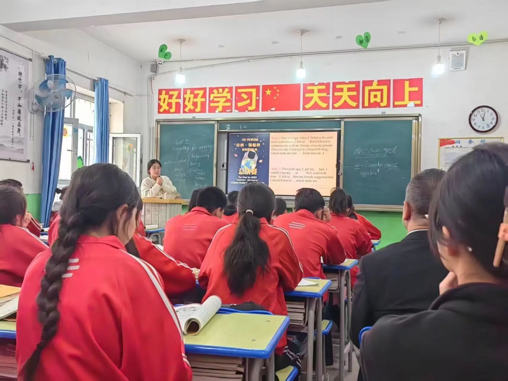 来到学校的第一周,英语组的老师们用最温暖的方式接纳了我。按照学校传统,实习老师要先进行为期一周的听课学习。那几天,我带着笔记本穿梭在各个教室,像块海绵一样吸收着当地老师独特的教学方法。我的指导教师阿瓦古丽老师告诉我:“在这里教书,最重要的是要慢下来。”这边的孩子基础都比较薄弱,她建议我每节课只重点讲解两三个知识点,但一定要确保每个学生都真正掌握。在此期间阿瓦古丽老师还介绍了很多管理班级的方法,都使我受益匪浅。高一英语组组长阿卜杜喀迪尔老师则教会我如何用简单的肢体语言和表情来帮助学生理解,他说:“有时候一个夸张的动作,比十遍重复更有效。”听课结束后,我被分到了高一2班、4班和15班,初次站上讲台的那一刻我还有点紧张,但看着台下五十多双澄澈的眼睛里跃动的求知火焰,瞬间点燃了我的教学热情。在后续的公开课评议会中,每个老师都向我提出了很多宝贵的建议,张志勤老师以及阿卜杜喀迪尔老师还提出了很多细节化的建议,前辈教师们毫无保留的指导,像一盏盏明灯,照亮了我这个教学新手的成长之路,慢慢地,我逐渐适应了这里的教学节奏。