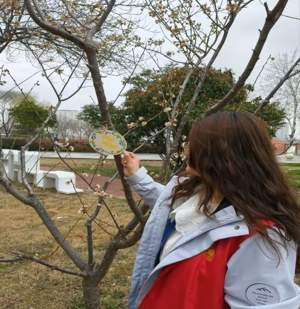 志愿者们拿着制作好的挂牌,来到校园的绿化区域,将挂牌悬挂在树木上。每挂好一个挂牌,志愿者们都会仔细检查,确保挂牌牢固且美观。