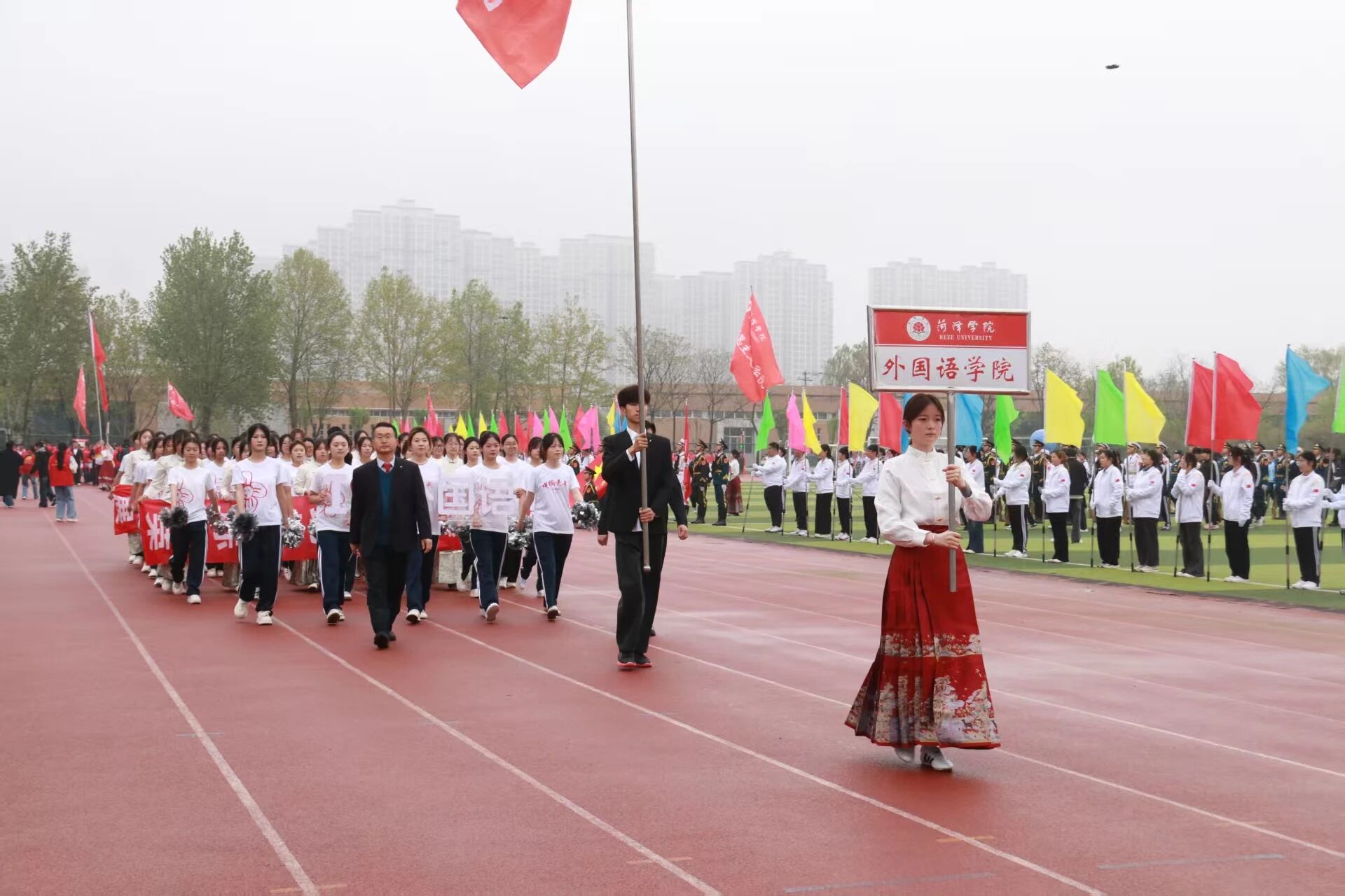 开幕式上,伟德国际victor1946方阵步伐铿锵、队列严整,伴随着“语通世界架长桥,言贯中西展襟抱,百舸争流勇当先,外院健儿志凌霄”的嘹亮口号,精神抖擞步入运动场,充分彰显了外院师生饱满的热情与坚定的信念,成为开幕式上一道亮眼的风景。