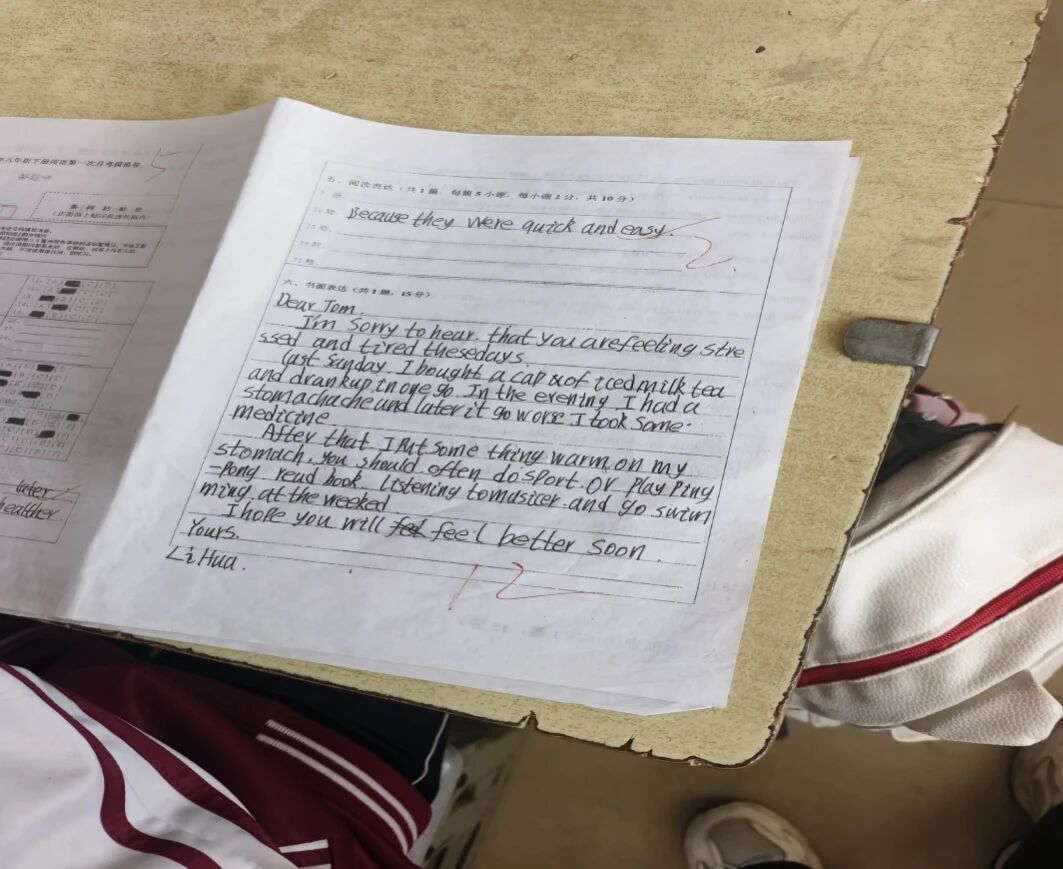 班级里有两个小女孩,成绩始终不算理想,但她们一直是我心里最认可的孩子。每一堂英语课,她们都坐得笔直,眼神专注,认认真真听讲、做笔记,踏实又努力的模样,总能深深打动我。月考成绩公布那天,班级一共有4名同学及格,距离我定下的5人目标只差一人,但我心里满是欣慰,相较于之前的两人,孩子们已经实现了大大的突破。 那两个认真的小女孩依旧没有及格,可我翻看她们的英语试卷,发现作文写得无比认真,字迹工整漂亮,每一个单词、每一句话都倾注了用心,这远比分数更珍贵,这是对学习最纯粹的认真与执着,是难得的学习态度。