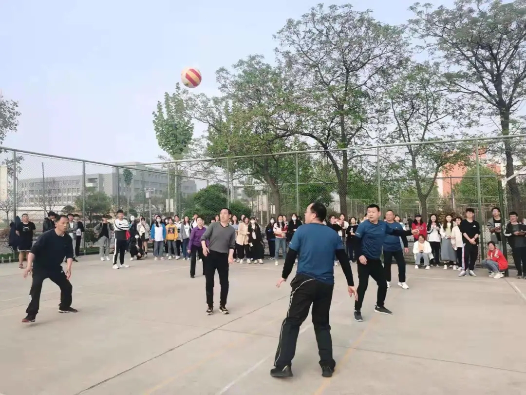 随着一声哨响,比赛开始,我院充分利用优先发球机会迅猛发球,吴成显和孔凡生配合默契,一传、起跳、扣球,成功赢得首分,极大的鼓舞了我方队员们的士气。随后我院教职工乘胜追击,凭借巧妙的战术、默契的配合连续得分。我院以25:7的比分成功拿下第一局比赛。短暂休息后,双方互换场地,展开更加激烈的比拼。我院教职工积极配合,沉稳应对。岳辉几个漂亮的扣球更是为我院赢得关键分数。我院教职工迅猛的发球、巧妙的拦网、精彩的扣杀赢得了场下观众阵阵喝彩。最终,我院以25:8的比分拿下第二局比赛。经过激烈的角逐,最终我院以大比分2:0战胜美术与设计学院。