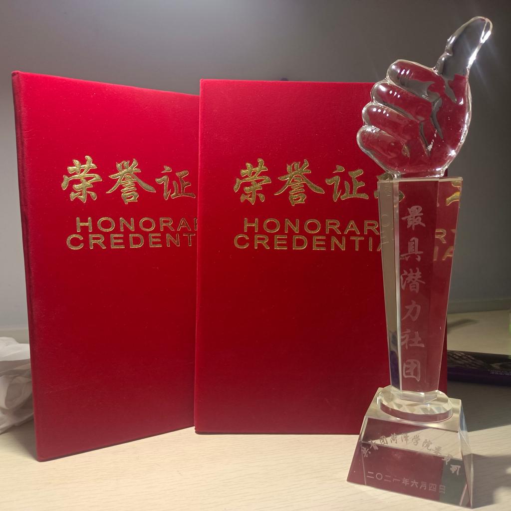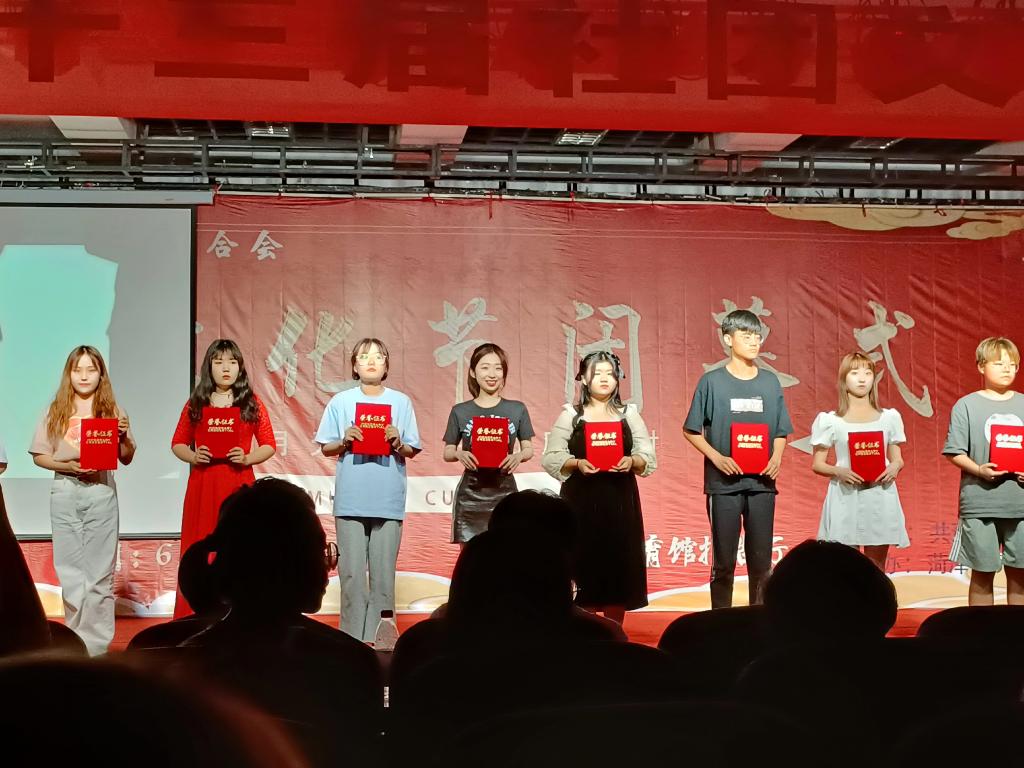 文化节闭幕式在锦瑟艺术团乐队的激情演绎中拉开序幕,振奋的音乐瞬间让现场气氛活跃了起来。本次闭幕式有歌曲、舞蹈、古筝、武术、朗诵等多种类型的节目,才艺表演与颁奖交叉进行。其中,我院英语俱乐部带来了配音表演——《后妈茶话会》。五位演员配音情绪饱满且富有感染力,标准的发音和流利的口语展现了我院学生深厚的英语功底,获得了台下观众的阵阵掌声。经过一年的努力,我院英语俱乐部荣获校级“优秀社团”称号、心连心助学联盟荣获校级“最具潜力社团”称号。社团负责人金源、胡宝仪荣获“优秀学生社团干部” 称号。