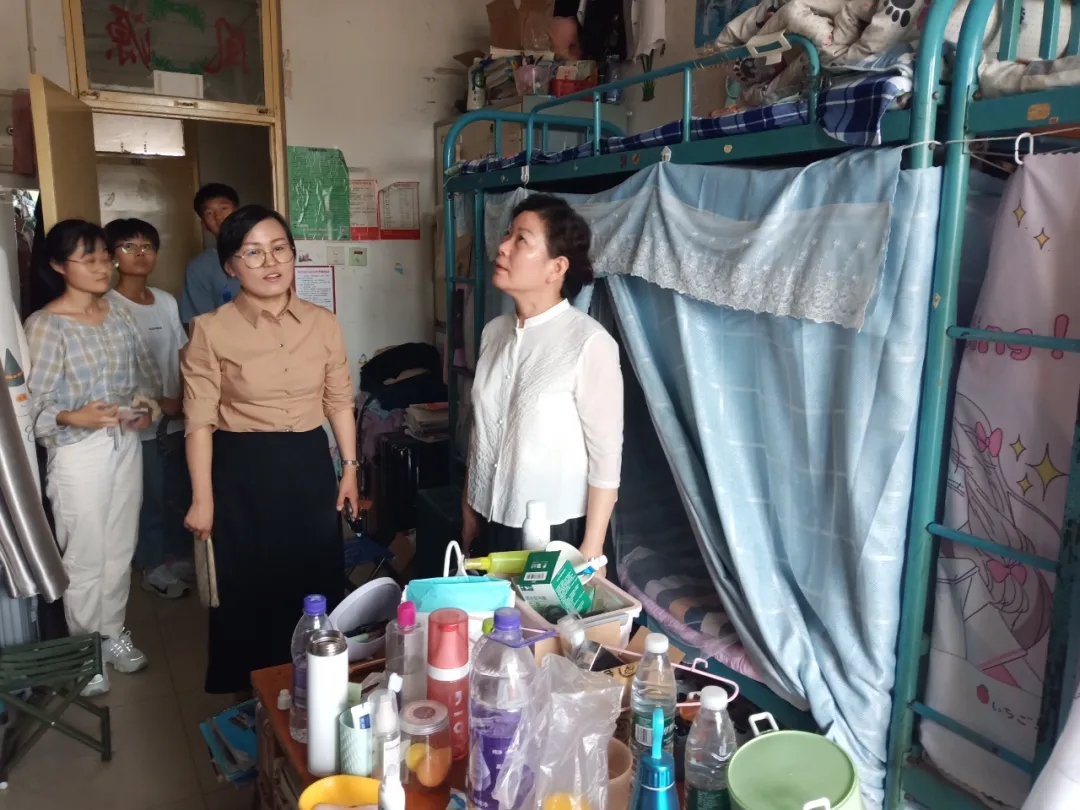 本次宿舍检查,除了常规的宿舍物品摆放问题、卫生问题及内务检查外,重点排查各毕业生宿舍安全隐患,查除大功率电器,消除安全隐患,切实保障宿舍用电安全。在毕业年级宿舍检查过程中,刘景岫亲切的询问了毕业生的就业去向、离校手续办理情况、未来规划以及离校前存在的困难等事宜,并进一步了解毕业生的思想状况。在走访毕业生宿舍过程中,针对卫生和安全工作不到位的宿舍,李翠霞提醒学生们,务必注意用水用电和人身安全,保持寝室环境卫生整洁。