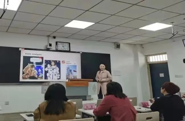 此次教学比赛邀请了菏泽医专任俊莲教授教学团队担任评委,共有5名教师参加。参赛教师结合“课程思政”的教学目标、教学内容和教学方法等对教学各个环节进行说课,并进行课堂教学展示。她们从各自担任的课程出发,结合授课内容,把“思政元素”完美融入了课堂教学之中。孙梦阳老师展示的教学单元为“Parents and Children”,通过warming up, text understanding, critical thinking等教学环节启发学生深入思考如何处理与父母的关系,并结合 “航天英雄王亚平女儿在出征现场为妈妈加油”这一最新时政,让学生意识到良性亲子关系的重要性,从而树立正确的亲情观和家庭观。宋慧岩老师将美国诗人罗伯特·弗罗斯特的著名诗篇 “The Road Not Taken”(未选择的路)作为授课内容,通过展现诗人处在十字路口时的艰难抉择,引发学生对于人生道路抉择的重大思考,从而引导学生明确目标,果断地选择自己想要走的那条路。刘静老师的教学内容为《英语语音》中的“音节”,通过网络平台的数据收集,确定本节课的教学重难点为音节的分类与结构。借助典型案例和实操训练,让学生掌握理论知识和实践技能。通过播放“This is China” 这一视频,要求学生找出多音节单词并分析其结构,在提高语言技能的同时培养了学生的家国情怀。丁慧新老师以大学英语课程 “Brave New World” 为授课内容,引用习近平总书记纪念五四运动100周年大会的重要讲话,“青年志存高远,就能激发奋进潜力,青春岁月就不会像无舵之舟漂泊不定”,以此鼓励大学生树立远大理想。楚焕焕老师的授课内容为“日本語の文字”,通过让学生了解日本文字和汉语的渊源,认识到日本文字的起源在中国,提高学生日语学习兴趣的同时,引导学生树立民族自信、制度自信和文化自信,弘扬社会主义核心价值观。