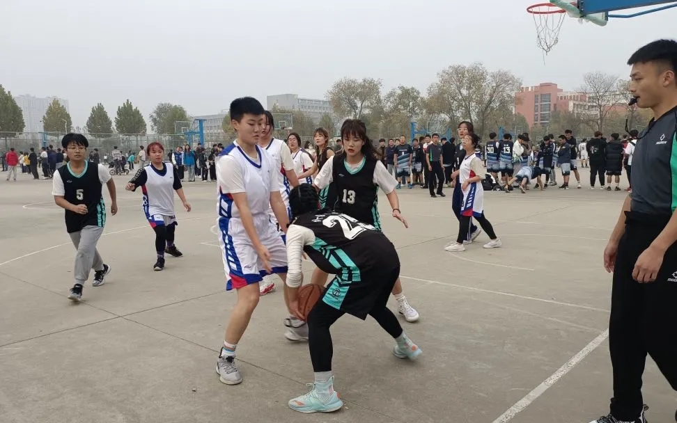 我院女篮首发阵容为5号张悦桐、7号纪孟辰、9号张晴、13号段晓蕊和25号朱亚茹,候补队员为2号左应洁、3号曹守洋、11号尹静宜、21号陈钰、16号初悦、13号孙玉霞和22号李敏敏。随着裁判一声令下,比赛开始,双方展开激烈角逐,比分交替上升,僵持不下。我方5号张悦彤、9号张晴精准的投篮极大鼓舞了我方士气。上半场结束,我方以8:11的比分暂时落后。女篮教练谭国伟对上半场比赛进行分析总结并进行战术指导。比赛进入下半场。我方队员带球突破,挡拆结合。7号纪孟辰展开强攻,不断进球,25号朱亚茹不断躲开对方拦截进行传球。2号左应洁快速追上对方进行快攻。我院队员的默契配合,赢得在场观众阵阵欢呼。但面对对方的猛烈进攻,我方成员体力消耗过大惜败。我院男篮首发阵容为0号焦煜鹏、3号卜庆硕、1号崔浩、5号田骏翔和13号郭芳鲁,替补队员为34号李纪翔和6号鞠照岩。比赛开始,我方按照事先安排的战术配合默契。对方首先利用防守优势,抢断我方,比分逐渐领先。我方虽处于下风,但队员们并不气馁,反而越战越勇,在团队的良好配合下进行反攻。中场休息期间,我方队员认真总结失误,制定新的战术。在下半场比赛中,每位队员都全力以赴,积极防守、进攻。0号焦煜鹏展开强攻,不断进球,1号崔浩不断躲开对方拦截进行传球,3号卜庆硕积极防守,精准接球,将比赛分差逐渐缩小。在场学生情绪高涨,不断为队员们打气喝彩,气氛热烈。尽管我院队员多次阻挡对手进攻,但最终仍以小比分惜败牡丹学院。