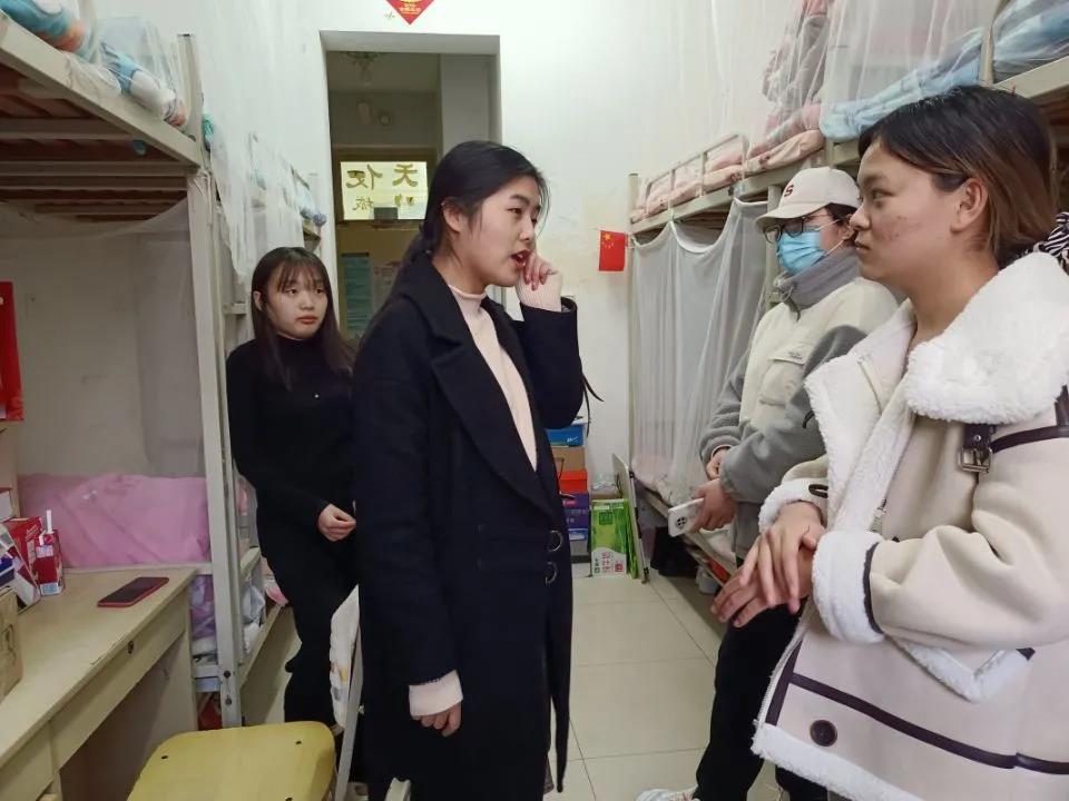 本次检查内容包括宿舍安全用电与卫生检查等方面。老师们重点对宿舍是否使用违规电器以及宿舍桌面物品摆放、地面卫生、床铺整理情况进行检查,指出存在问题并提出整改要求。在检查过程中,老师们与学生进行亲切交流,进一步了解学生的生活习惯及学习情况,同时提醒学生们注意养成良好的生活习惯,多注意保暖。通过检查发现,大部分宿舍用电合理且无大功率电器使用情况,卫生整体情况良好,基本上做到了被褥衣物叠放整齐,地面、桌面干净整洁。与此同时,仍发现有个别宿舍卫生不达标,物品摆放杂乱无章,检查人员对这些宿舍提出要求,希望学生们严格要求自己,规律作息,及时打扫卫生,营造良好宿舍环境。最后,宿管部成员对检查情况进行记录评分。