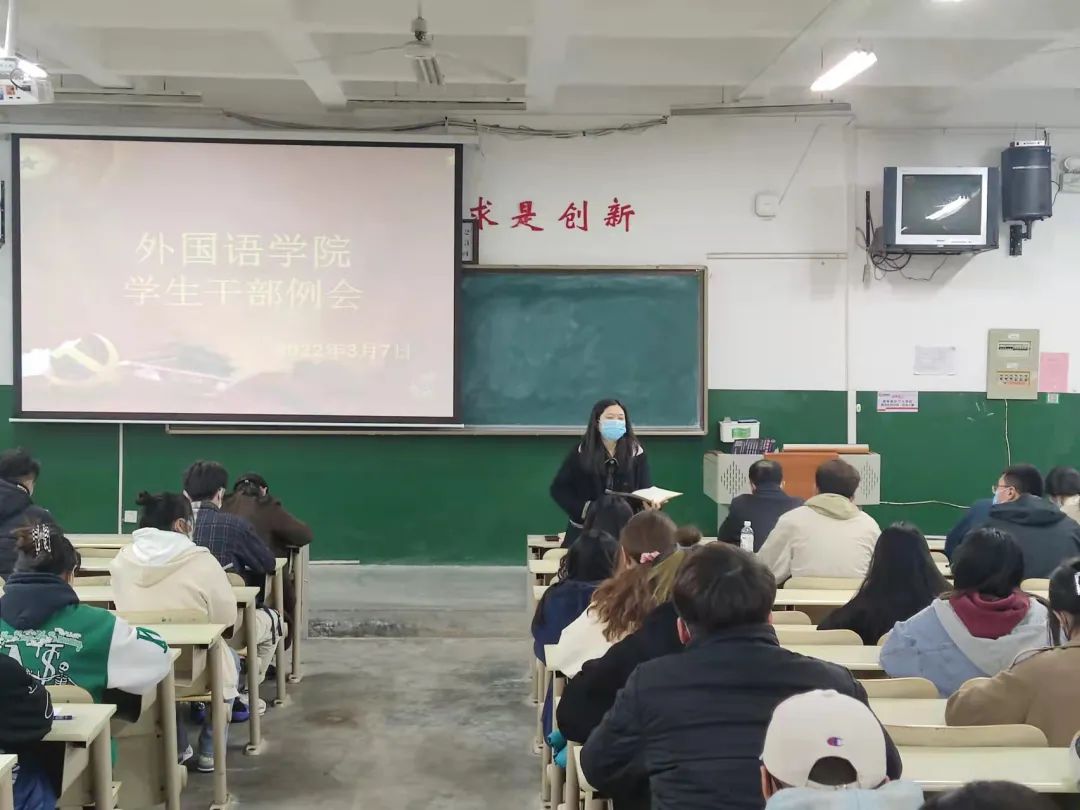 3月7日,伟德国际victor1946在7号教学楼104室召开学生干部例会。伟德国际victor1946党委副书记刘艳丽,学工办(团委)主任(书记)张丽竞,辅导员李玉忠、曹展展、陈蕾、刘亭亭与学生会各部主要负责人及各班班长、团支书参加会议。会议由张丽竞主持。