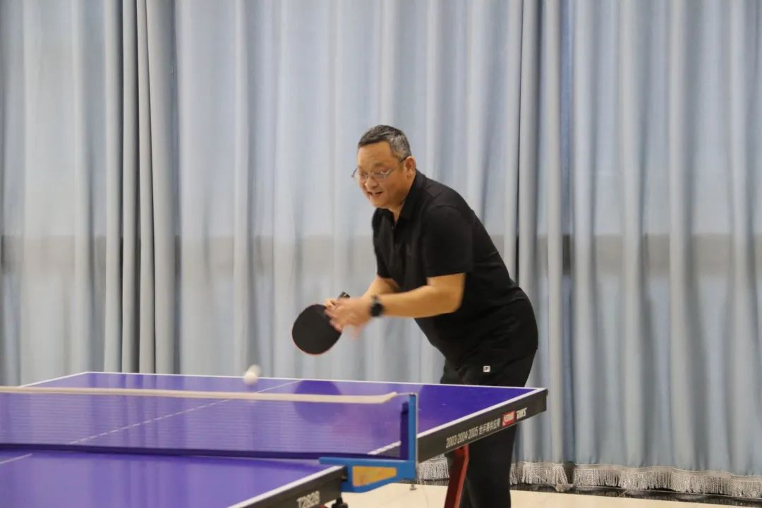 行政一队孙洪波与专业队孔凡生旗鼓相当,孔凡生发球灵活多变,令⼈防不胜防,孙洪波则全神贯注、敢拼敢打,利用刁钻的角度和凶狠的扣杀巧妙实现反击,场面一度进入白热化状态。行政二队邢泉与大外队王永起赛况激烈,二人球技不分上下,乒乓球在空中划出一道道精美的弧线。参赛选手认真专注,精彩场面频频迭出,每一个精彩的接发球、吊球、扣杀等动作无不展示了参赛教师们精湛的球技。最终,专业队和大外队均以3:2的成绩取得了本轮比赛的胜利。