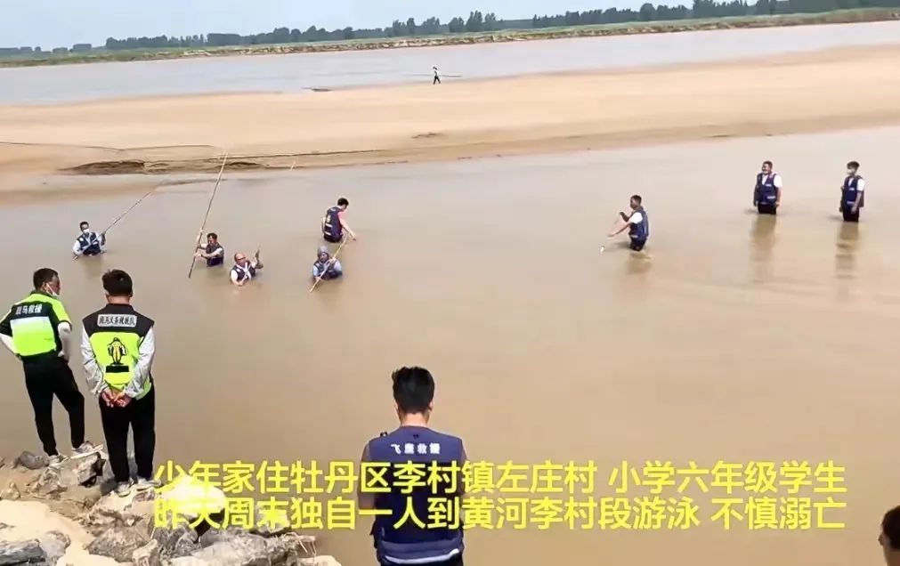 一少年在黄河菏泽市牡丹区李村段,被打捞出水,已无生命体征,据负责救援打捞工作的菏泽市冬泳协会会长刘贵林介绍,少年家住牡丹区李村镇左庄村,今年只有13岁,小学六年级学生,周末独自一人到黄河李村段游泳不慎溺亡。