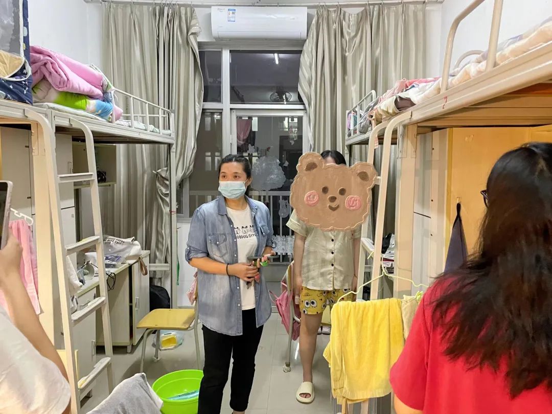 当晚,我院党委副书记张丽竞,辅导员陈蕾至宿舍楼进行走访。在走访过程中,张丽竞询问新入住学生的住宿情况,对每个宿舍的物品摆放、室内卫生、违规电器等方面进行检查,并鼓励学生养成良好的卫生习惯,增强安全意识和劳动意识,共同营造安全有序、干净整洁、美观舒适、文明和谐的宿舍环境。