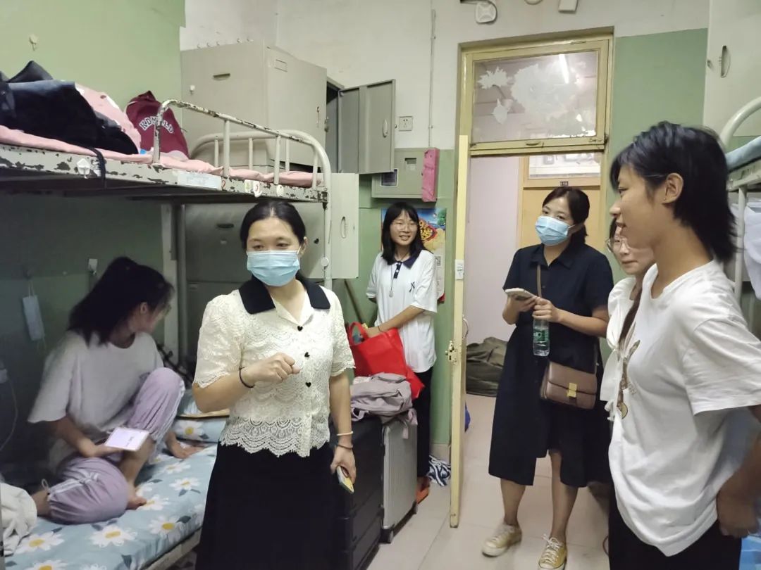当晚,张丽竞、曹展展深入走访新生宿舍,与新生亲切交谈,了解新生到校后的适应情况,就新生提出的生活和学习方面的问题进行解答,提醒新生提高防控意识,严格执行学校的防控管理规定和相关安排部署,并希望新生尽快转变角色,以乐观的态度和饱满的精神状态投入到新学期的学习和生活中。本次宿舍走访架起了师生之间沟通的桥梁,拉进了学院与新生的距离,使新生感受到外院大家庭的温暖与关怀,极大提升了新生的获得感和幸福感。