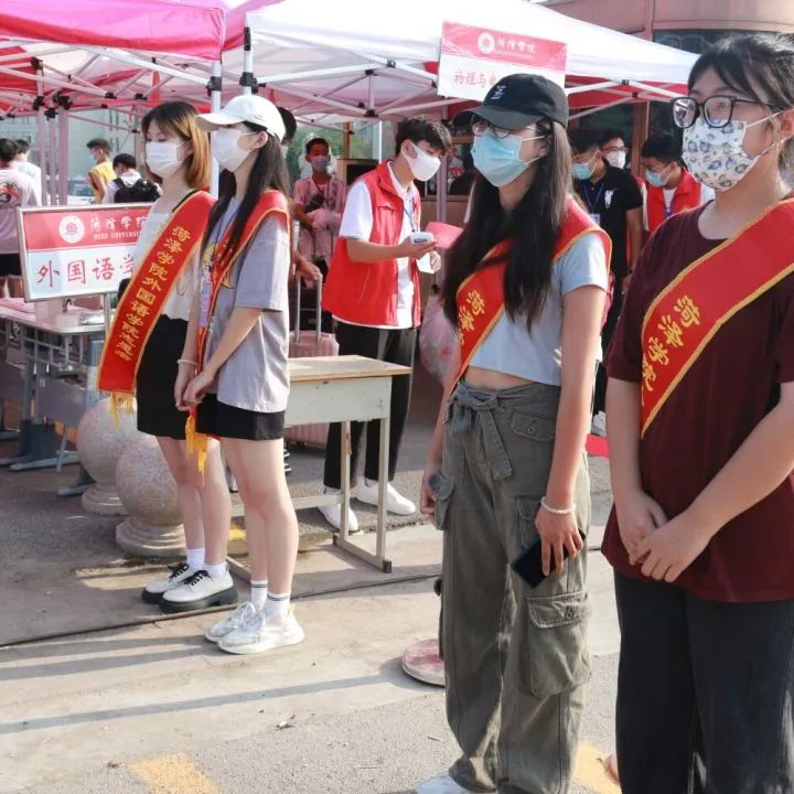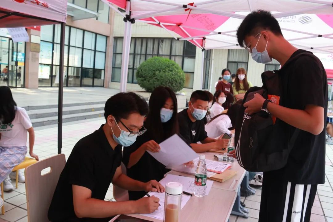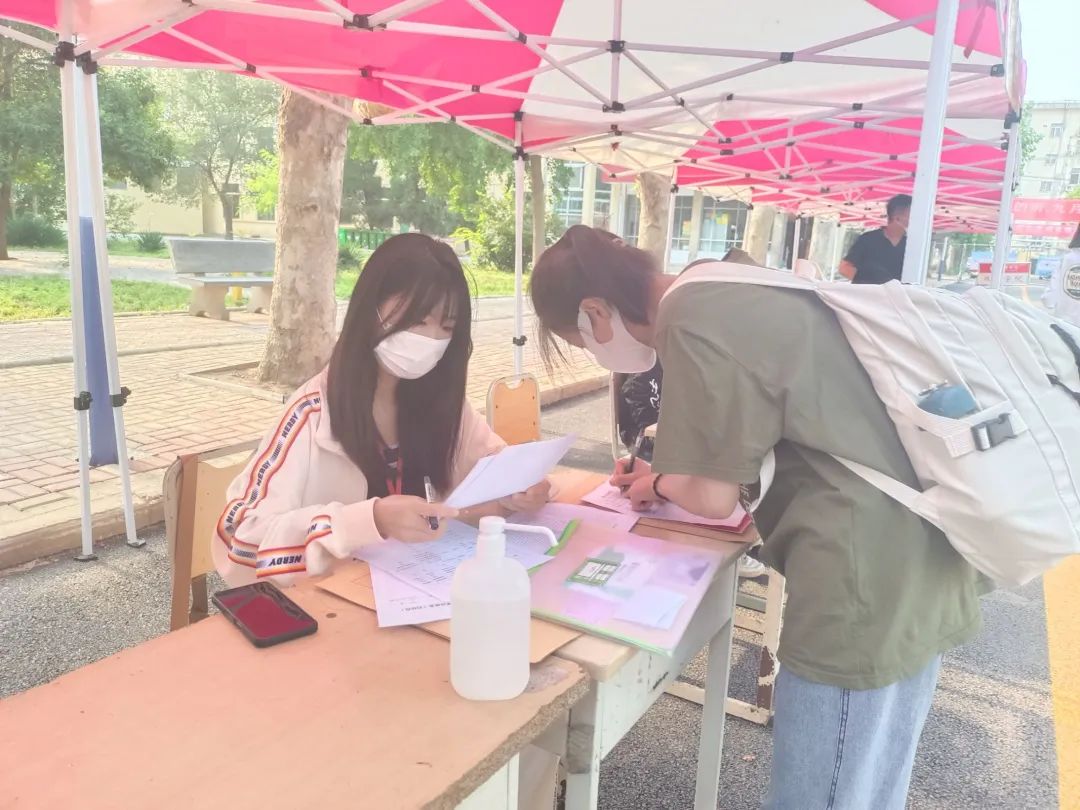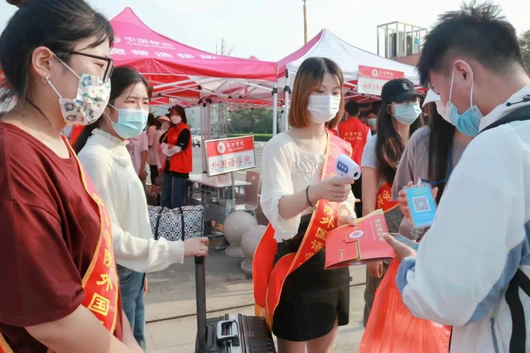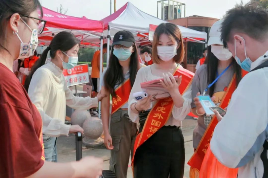 我院新生报到现场井然有序,每一名新生进入学校前,都会经过检查录取通知书、查验三码一核酸、测温三个程序。自新生踏入校门的那一刻起,迎接他们的便是提供服务的志愿者,志愿者将陪同新生完成报到流程,志愿者的帮助和引导为我院迎新工作顺利进行提供了保障。外语楼前的工作人员指引新生扫码报到、填写资料,进行身份核验,细致的审查每位新生的入学资格,整个报到流程有条不紊地进行着。我院工作人员以积极饱满的精神状态、热情主动的工作态度迎接新生的到来,保证迎新工作高效率推进,彰显了我院学子的青春风采和责任担当。