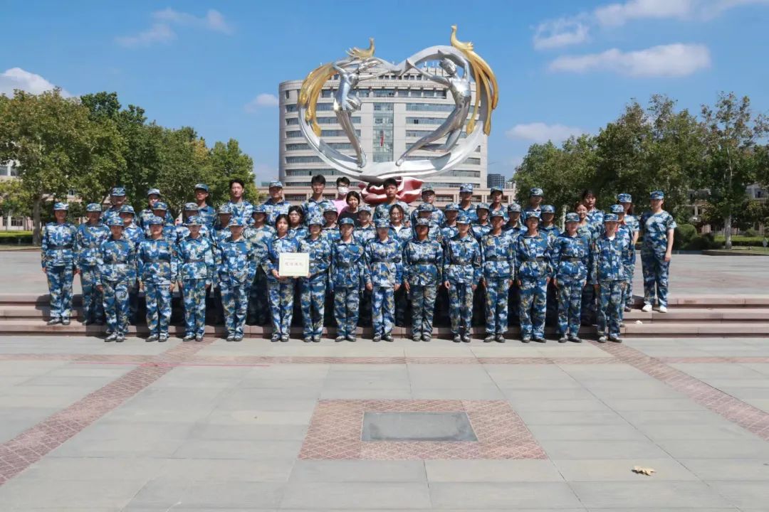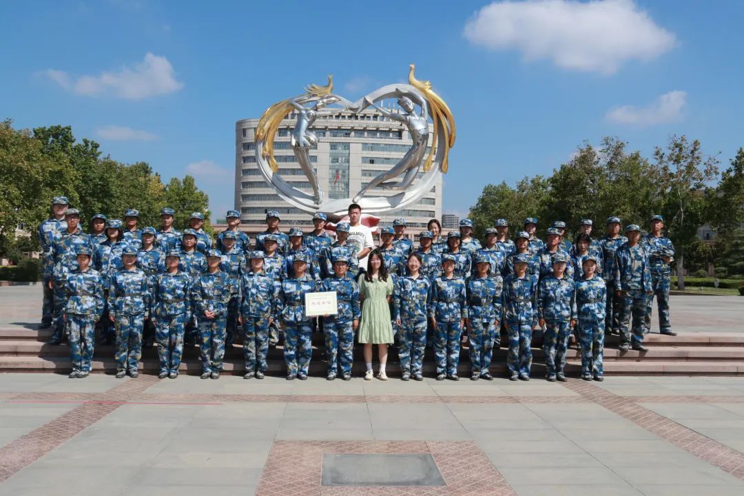 军训总结表彰大会结束后,我院2022级各班学生和班代于梦开始的地方进行了合影留念。