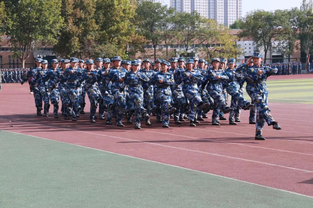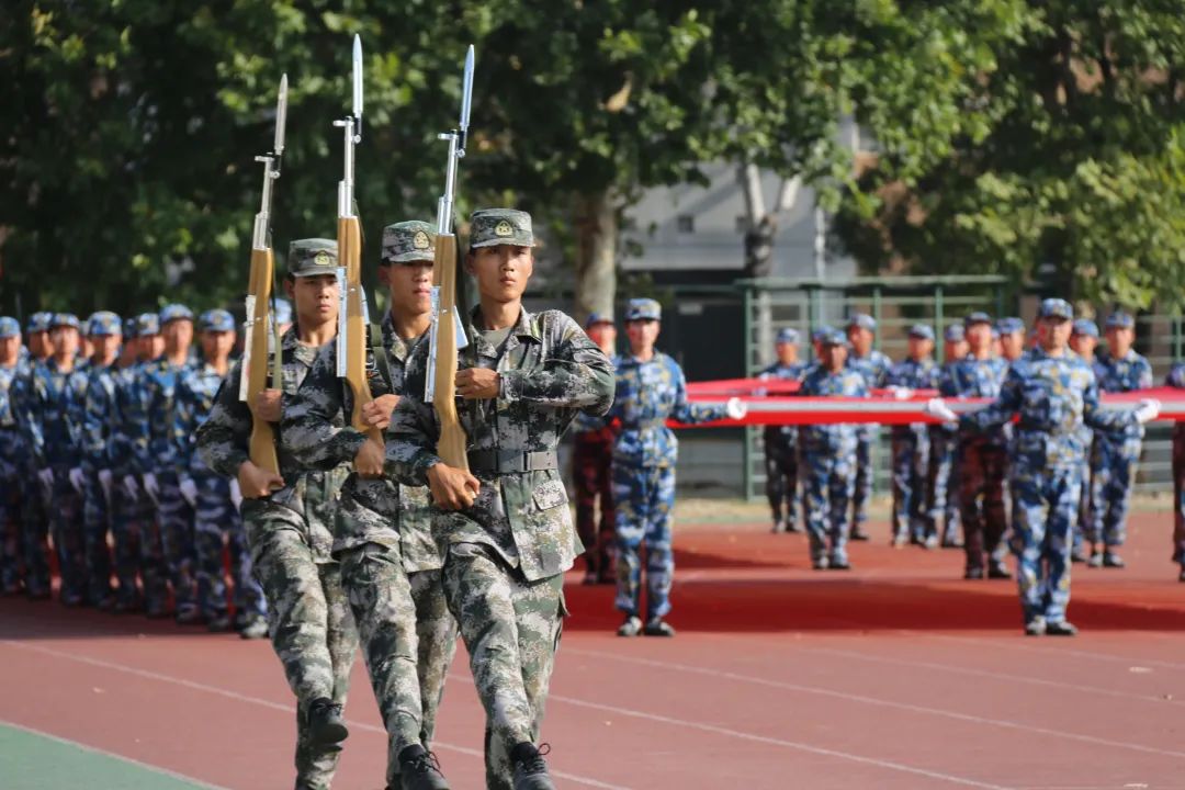 庄严的升旗仪式结束后,军训汇报表演随着连队英姿飒爽的步伐拉开帷幕。我院第九连队学生目光坚定、步履铿锵地走过主席台,接受检阅。他们在教官的带领下,高质量地完成了齐步走、正步走等汇报演出,以优异的表现,昂扬的姿态,展现了新一届学子蓬勃向上的朝气和锐意进取的精神。