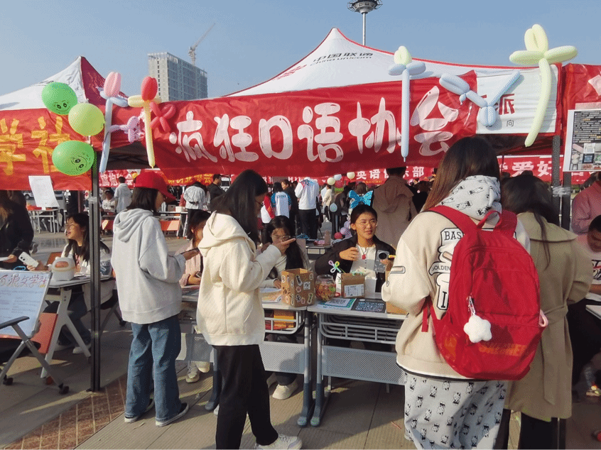 疯狂口语社团的“看图说单词”游戏为现场增添了许多乐趣,此外还有词语小火车、三词造句和乌龟对对碰等互动环节。这些有趣的知识问答活动不仅活跃了气氛,还搭建起了学生与英语口语之间的桥梁。心连心助学联盟在本次文化节上准备了包括口不对心、正话反说、听歌识曲等多种游戏项目,这些富有创意的游戏,让参与者在轻松愉快的氛围中感受到社团的热情与温暖。