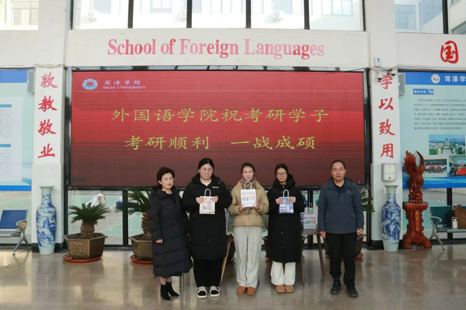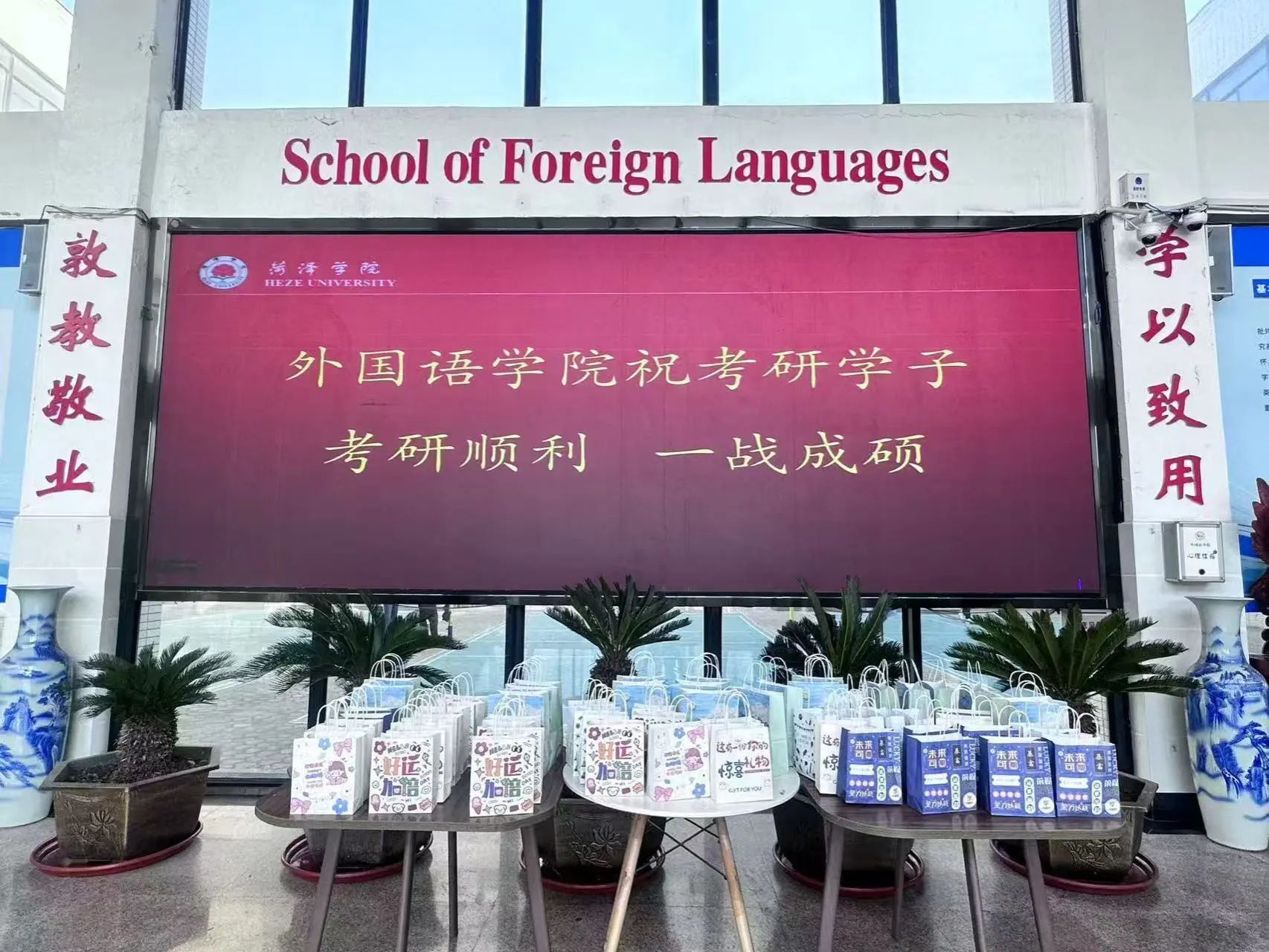 为鼓励考研学生积极备考,调整考试心态,缓解考试压力,增强学生考研的信心与动力,12月20日,我院于外语楼大厅为考研学子发放考研爱心礼包,为众多即将踏上考研征程的学生送上温暖与鼓励,我院党委领导班子成员、全体辅导员出席本次活动。