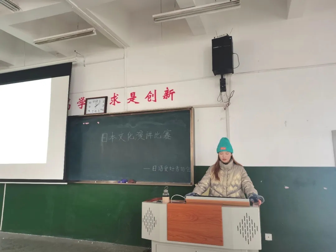 12月13日,由外国语团委主办,日语爱好者协会承办的“我心中的樱花国度”日本文化演讲比赛于7号教学楼302室举办。我院日语爱好者协会负责人宫晨担任本次比赛主持人,共20余人参加本次比赛。