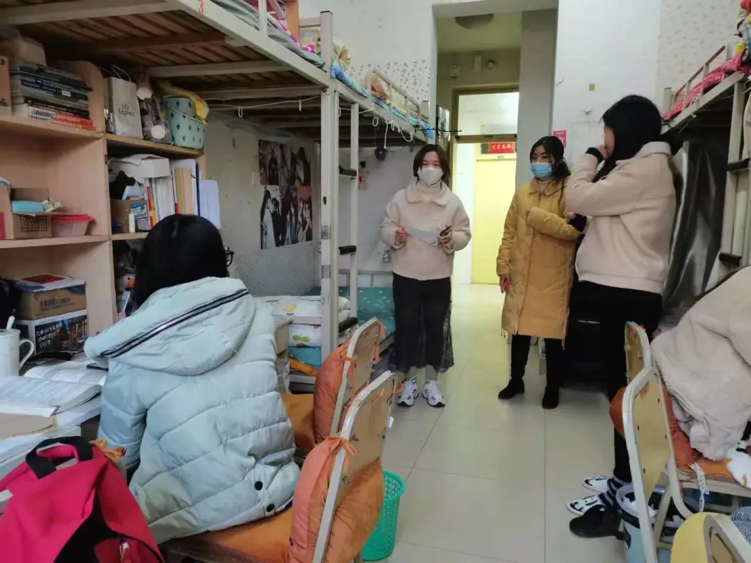 本次检查以“安全”为主线,认真排查学生公寓内存在的各种安全隐患,特别是消防安全隐患。在检查过程中,各位老师重点对宿舍里的违禁用品、消防设施、水电、暖气等多项设施进行逐一排查,并反复叮嘱学生们要时刻注意寝室消防安全,同时重申了学校关于疫情防控相关管理要求,提醒大家要养成良好的生活和作息习惯。其中,大多数宿舍能做到勤开窗通风、被褥叠放整齐、合理安全用电,但仍有个别宿舍存在阳台门窗损坏等安全隐患。李玉忠提醒学生们放假之前整理好自己的物品,定期做好卫生清洁,营造良好的宿舍环境。张丽竞强调道:“宿舍安全关系到每位学生,不容忽视,在安全问题上任何人都不能存有侥幸心理,务必规范使用与管理。通过本次排查,对发现的问题要立查立纠,及时整改,安全无小事,要切实加强安全工作,做到防患于未然。”