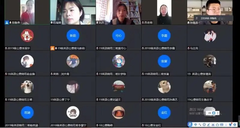 第二讲的主题是“初中英语听说课模式解读、优秀课例展示及评析”。本次活动特邀刘杰、石瑞斐、孙海龙三位指导教师,为师范生们解读初中英语听说课教学方法与技巧。刘杰老师首先从“大概念”和单元整体教学的内涵与意义,阐述基于大概念进行单元整体教学设计的途径与方法,以期推动英语学科核心素养和学科育人目标落地课堂。随后,刘老师从七个步骤对初中英语听说课教学模式进行了详细解读。刘杰老师首先从“大概念”和单元整体教学的内涵与意义,阐述基于大概念进行单元整体教学设计的途径与方法,以期推动英语学科核心素养和学科育人目标落地课堂。随后,刘老师从七个步骤对初中英语听说课教学模式进行了详细解读。接着,她展示第一届全国中小学青年教师教学比赛初中组一等奖课例,并针对教学内容和环节的设计进行评析。她认为,成功的课堂应当突出“以学生为主体”,学生学习在前、教师指导在后。石瑞斐老师从课例中的亮点出发,着重提出初中听说课教学的备课“三要素”,即“备教材、备学情、备教师”。此外,她认为在教学中应注重科学的方法和现代技术手段的运用,明确听说课的教学目标和方向,做到“听中有说,说中有听,听说结合”。最后,石老师强调了在教学中融入“德育”的重要性,以及引导学生树立正确价值观的意义所在。最后,孙海龙老师为师范生们展示了2020年济南市网络教学优秀课例并进行点评。孙老师从课的框架、设计理念与目标、具体的教学内容和方法等角度对课例进行剖析,讲解了教学步骤,解读了教学目的。最后,孙老师对师范生们未来的教学工作提出了四个建议,即丰富课堂用语、拉近师生距离、创设真实情景、引导学生思考。