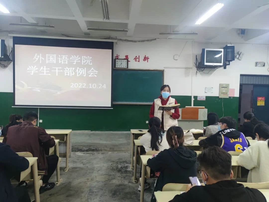 陈蕾提出学生要自觉遵守学校宿舍管理规定,养成良好的生活习惯,保持宿舍安全、卫生、整洁。她强调,要严格请销假流程,遵守相关的防控规定。随后,曹展展对新一周学生会作出安排。并提到,学生会各部门要明确职责,保障我院核酸检测工作顺利开展。