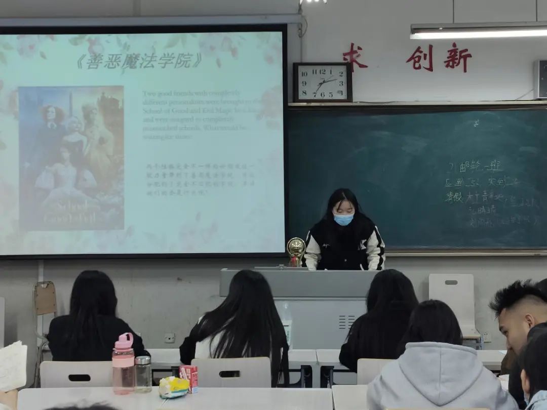 参赛选手利用PPT展示、音乐欣赏、视频观看等用英文方式向大家介绍推荐的电影。介绍内容主要包括电影角色、推荐原因、心得感悟等方面。2021级商务邮轮班杜静如向观众推荐电影《善恶魔法学院》,她将分享内容与ppt相结合,运用眼神交流和肢体语言与观众进行互动,引起评委的一致好评。2022级商务英语班王谱超推荐的电影是《加勒比海盗》,他对电影进行深刻的剖析,并以流利的口语、自信的表现获得评委的认可。评委根据参赛选手的英文发音、情感、PPT排版设计等方面进行打分。最终评出一等奖、二等奖、三等奖。