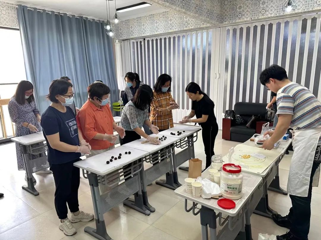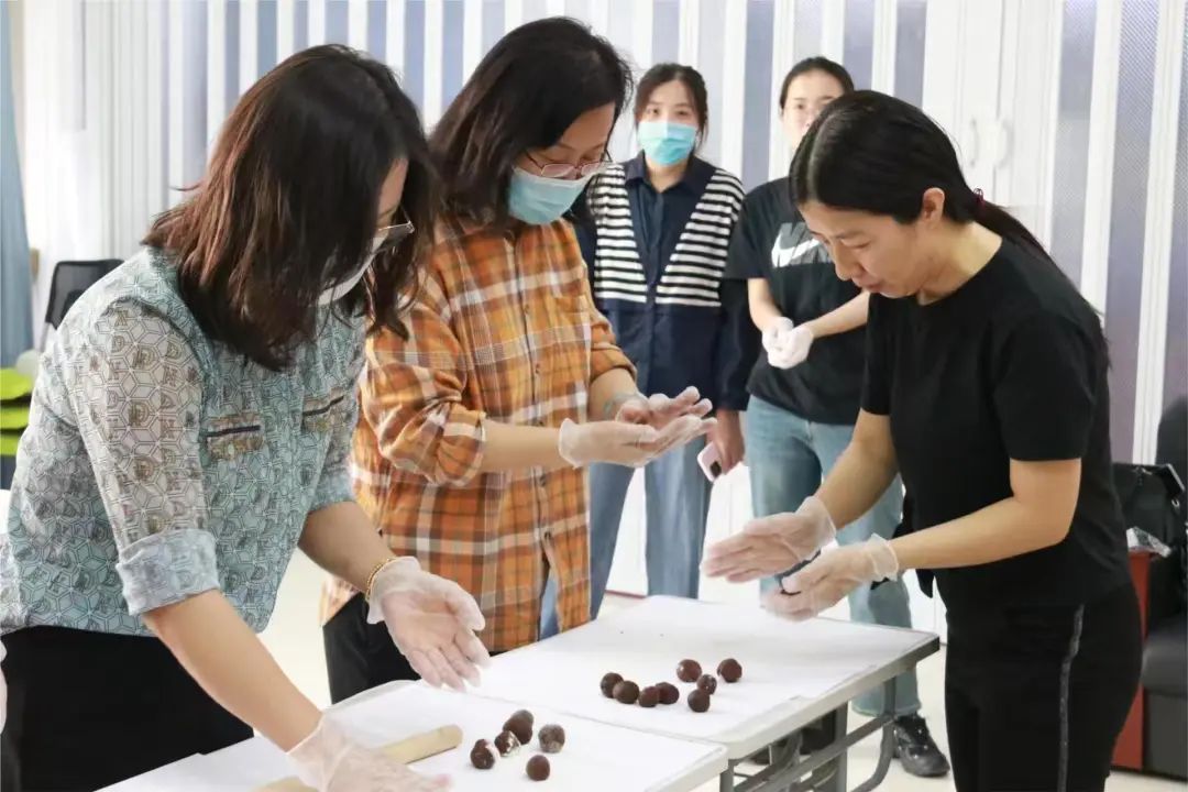 刘川伟从选用的食材、配料、制作的方法、油酥处理等几个方面进行现场教学,同时讲解了烘焙知识、面团的制作步骤和要领。我院教职工仔细倾听,认真揣摩,熟悉材料、工具,对烘焙有了初步了解。教职工有条不紊地进行称重、和面等步骤,体验亲手制作的乐趣,培训现场气氛温馨、融洽。