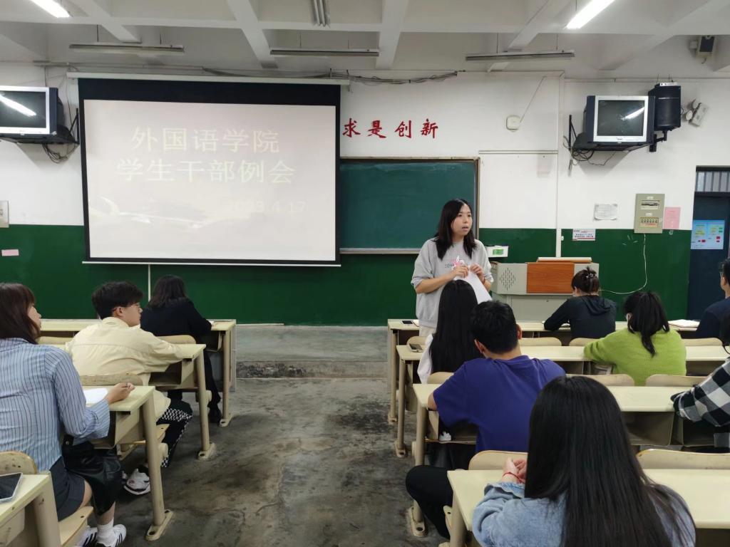 4月17日,伟德国际victor1946在七号教学楼104室召开学生干部例会。我院党委副书记张丽竞,辅导员曹展展、丁经伟、朱叶遥,学生会各部主要负责人及各班班长、团支书参加。