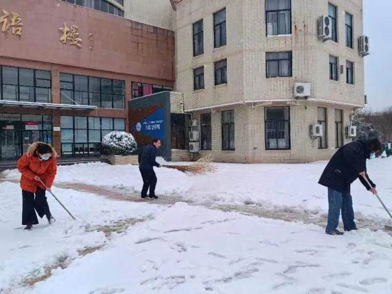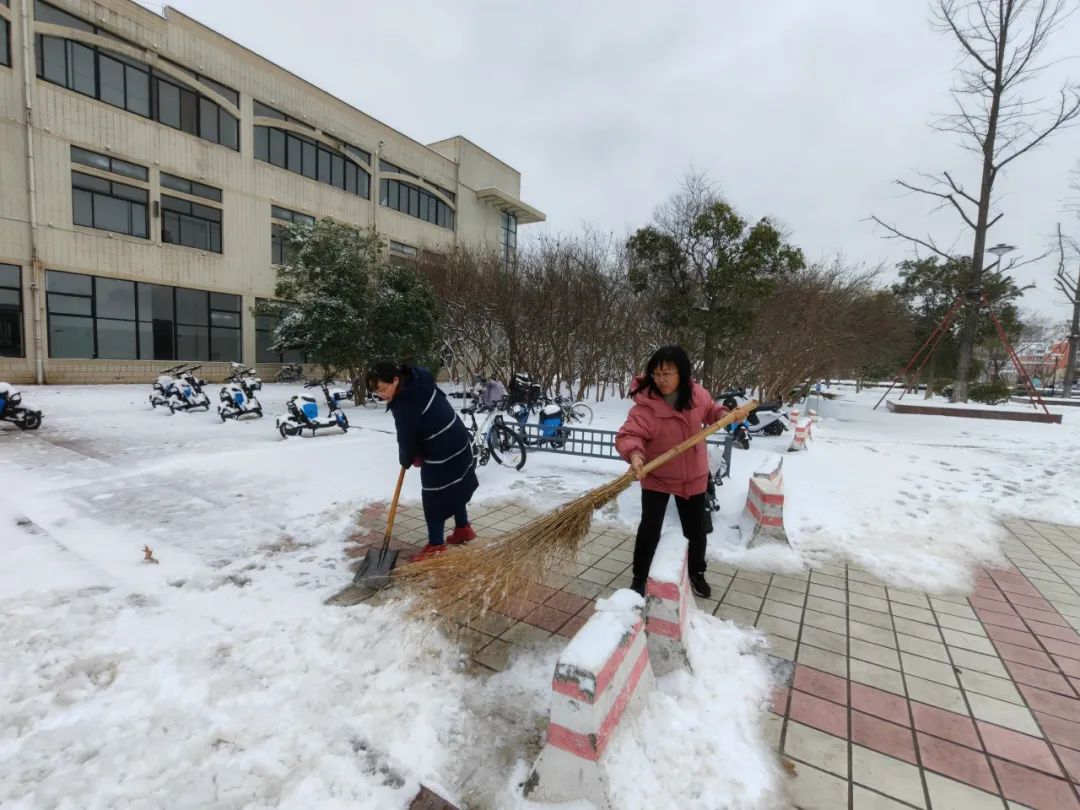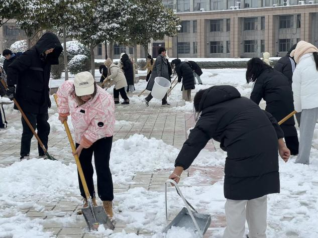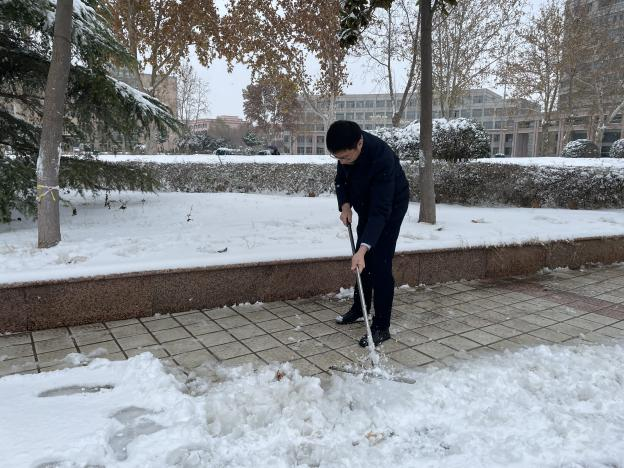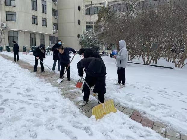 老师和志愿者们分区域开展扫雪工作,冒着严寒拿起除雪铲、扫帚等工具开始清扫活动。在扫雪过程中,大家干劲十足,默契合作。我院志愿者们用暖心的行动扫出了一条“绿色通道”,谱写了校园最美丽的风景。