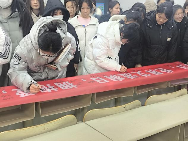 宣讲伊始,马成成从“宣告本次活动的主题”、“了解艾滋病”、“艾滋病的传播路径”和“艾滋病的预防措施”四个板块展开阐述。他指出,艾滋病会对个人和社会造成很大的影响,感染者将面临身体疼痛、精神压力和经济困难等多重困境。随后,他重点讲解了艾滋病的传播途径和预防措施,用生动的事例、大量的数据以及令人触目惊心的图片,让学生们深刻地了解了艾滋病的危害,以及防治艾滋病的有效措施。在此期间,我院参会学生依次在横幅上进行签名,表达了自己对防治艾滋病的决心。