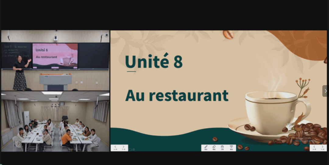 舒娜老师则围绕《第二外语(二)(法语)》课程展开教学展示。该课程为大二英语师范专业学生的通识必修课,教学内容基于《新编大学法语》,并选取第八单元“Au Restaurant(在餐馆)”为主题开展教学设计。课堂中,舒老师注重跨文化交际意识的培养,引导学生在模拟餐厅点餐场景中运用法语进行实际交流;在技术赋能方面,灵活运用Deepseek平台设计互动游戏,提升课堂参与度与趣味性;同时融入中法饮食文化对比,推进课程思政建设,帮助学生增进文化理解与包容,提升人文素养。