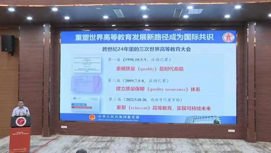 会议伊始,教育部高等教育司武世兴副司长就“三进”工作发表了重要讲话,他指出要提高外语人才自主培养质量,首先必须深刻认识“三进”工作的重要意义,对标党中央要求提高认识,对标时代发展要求更新认识,坚持问题导向深化认识,深入推进有组织的外语人才培养,加快构建中国自主知识体系;其次要全面推动“三进”工作走深走实,进一步压实工作责任,进一步深化课程体系和教学内容改革,进一步提升教师的教学能力,进一步提升学生的实践能力,进一步加强交流和推广。武司长强调教师要做习近平新时代中国特色社会主义思想的忠实信仰者、高校外语教育改革的创新实践者和外语专业学生成长成才的引领守护者,培养高素质复合型外语人才。