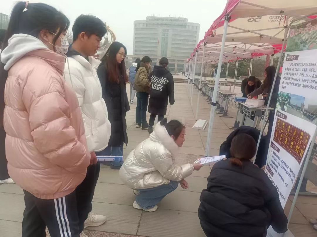 为进一步促进我校毕业生更加充分就业,为用人单位和广大毕业生搭建供需见面平台,2月18日,由伟德victor1946学生处(就业工作办公室)主办,马克思主义学院、政法学院和音乐与舞蹈学院承办的伟德victor1946 2023 年“相约春天,‘职’等你来”毕业生就业双选会,在综合办公楼前广场举行。我院辅导员朱叶遥、就业工作相关负责同学、2019级毕业生,2020级、2021级部分在校学生参加了此次活动。