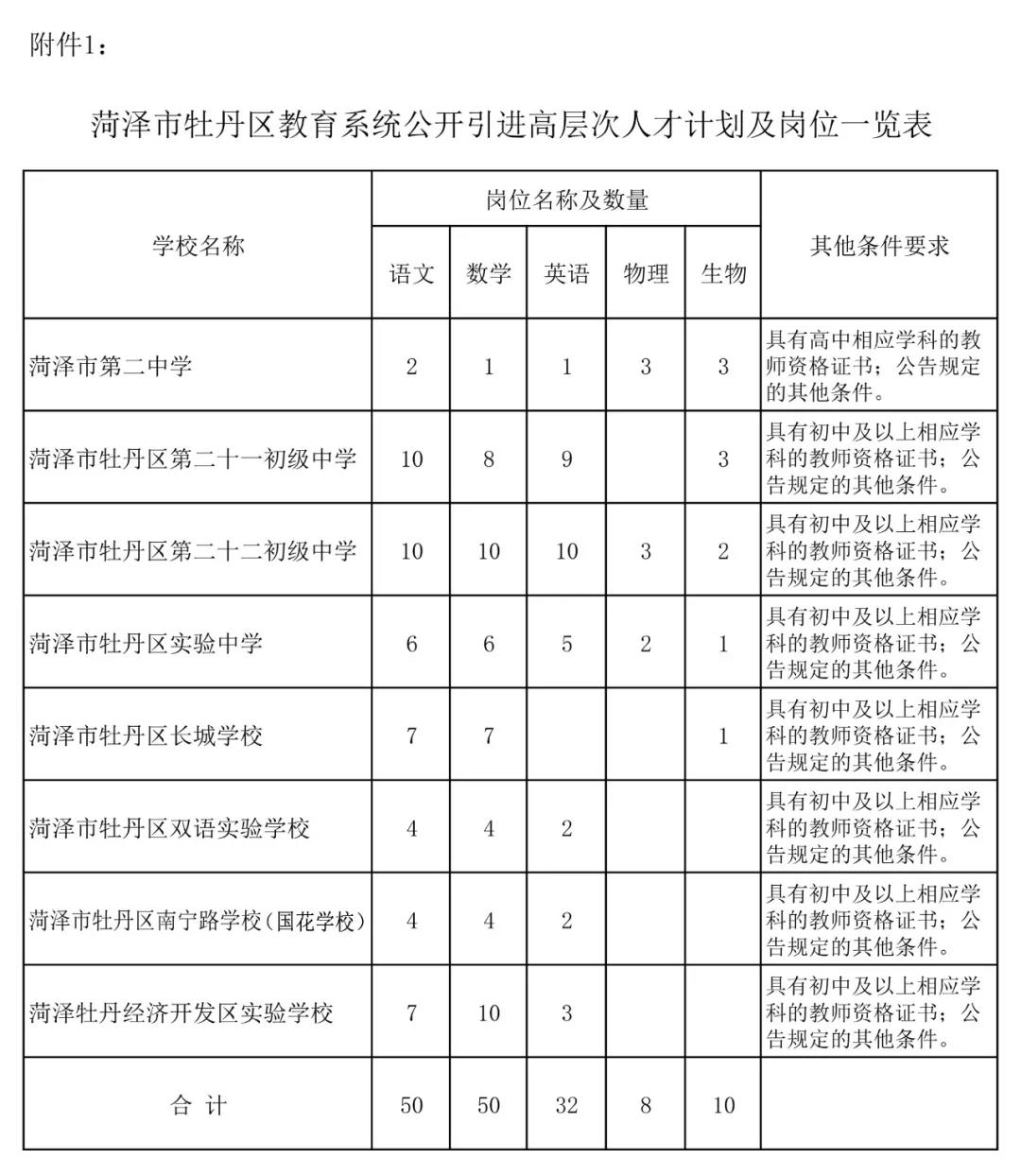 附件:1.菏泽市牡丹区教育系统公开引进高层次人才计划及岗位一览表    2.菏泽市牡丹区教育系统公开引进高层次人才报名登记表点击文末阅读原文下载附件