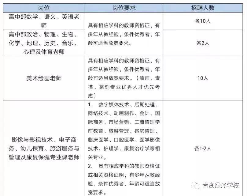 青岛绿泽学校招聘公告