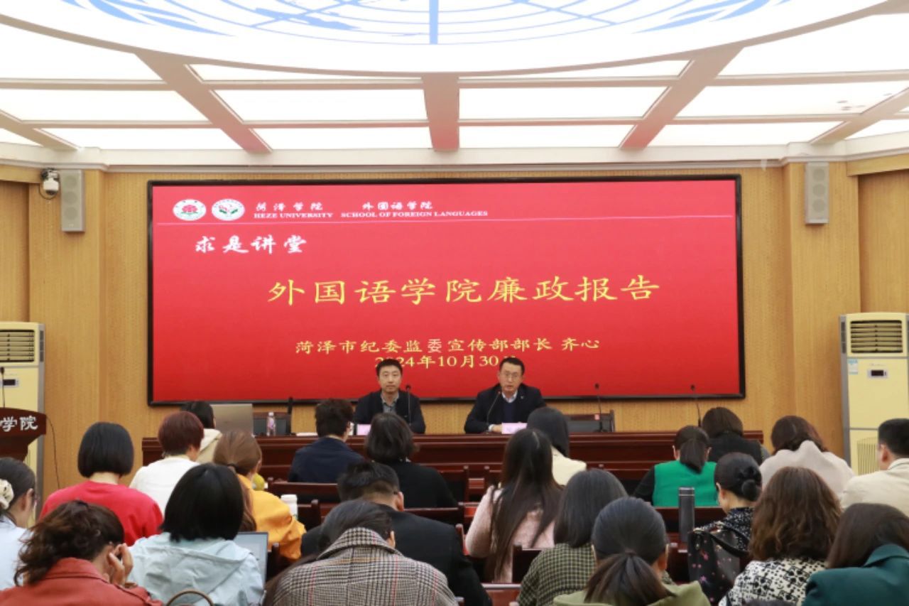 10月30日下午,伟德国际victor1946求是讲堂第四期——遵规守纪,廉洁从教,为强国建设贡献力量报告会在7号楼102会议室举办,本次报告会邀请菏泽市纪委监委宣传部部长齐心作报告,伟德国际victor1946党委理论中心组成员、部分教职工、学生代表参加,会议由伟德国际victor1946党委书记樊庆勤主持。