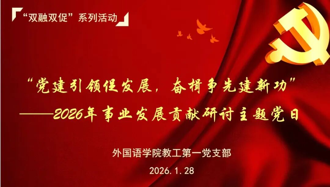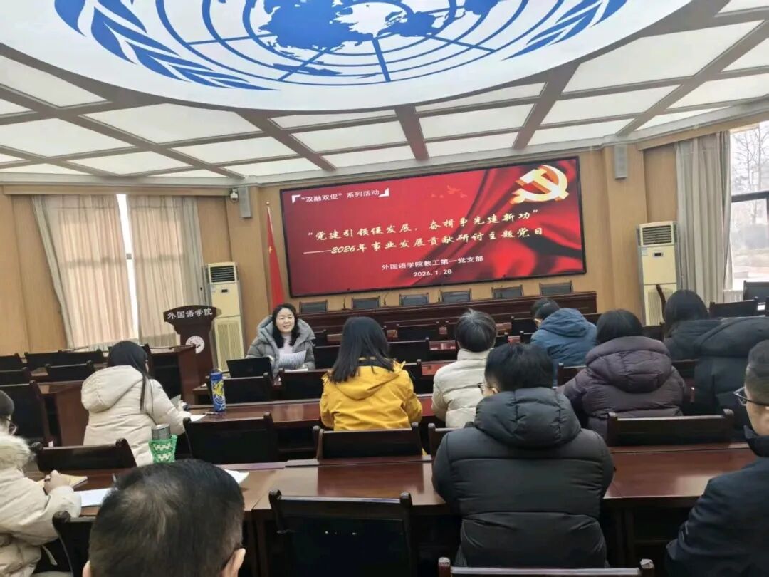 为深入学习贯彻党的二十届四中全会精神,推动党建工作与大学外语教学业务深度融合,凝聚发展共识,明确奋进方向,1月28日下午,伟德国际victor1946教工第一党支部召开了以“党建引领促发展,奋楫争先建新功”为主题的党日活动,聚焦学院2026年事业发展考核指标,组织全体党员教师开展专题学习和研讨。