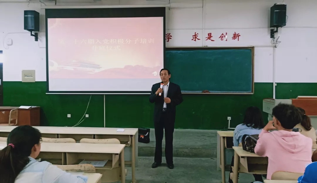 开班仪式伊始,由张丽竞向入党积极分子介绍本次培训班举办的主要目的。全体与会人员起立,奏唱国歌。随后,由王丽芹向入党积极分子传达第二十六期入党积极分子培训班课程安排和培训班学院纪律要求。王丽芹指出本次授课共分为集中授课、实践教学、个人自学以及学习心得体会四个项目,并对入党积极分子提出不得迟到早退、按时签到,认真做好笔记、不要违纪等几点要求。为进一步规范入党积极分子的入党目的,吴成显对入党积极分子提出以下要求:一、要端正态度,以中国特色社会主义思想规范自己的行为。加强思想建设,积极宣传党的先进思想。 二、在参选过程中,严格规范自己行为,遵守学校纪律。发挥好先锋模范作用。杨冬进行培训班第一讲 《如何学习中国共产党章程》。杨冬围绕新时代中国特色社会主义思想、党章概述、党章的发展历程、党章总纲、党章条文、如何学习十九大党章等六个方面向入党积极分子具体的讲解了《中国共产党章程》的内容。随后,杨冬指出要成为一名合格的大学生党员必须要端正入党动机,要求学员们要认真学习《中国共产党章程》,并以其为标准严格要求自己。最后杨冬指出,入党积极分子们首先要做到思想入党、行动入党,要以自己的实际行动争取早日组织入党。