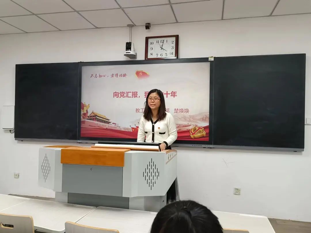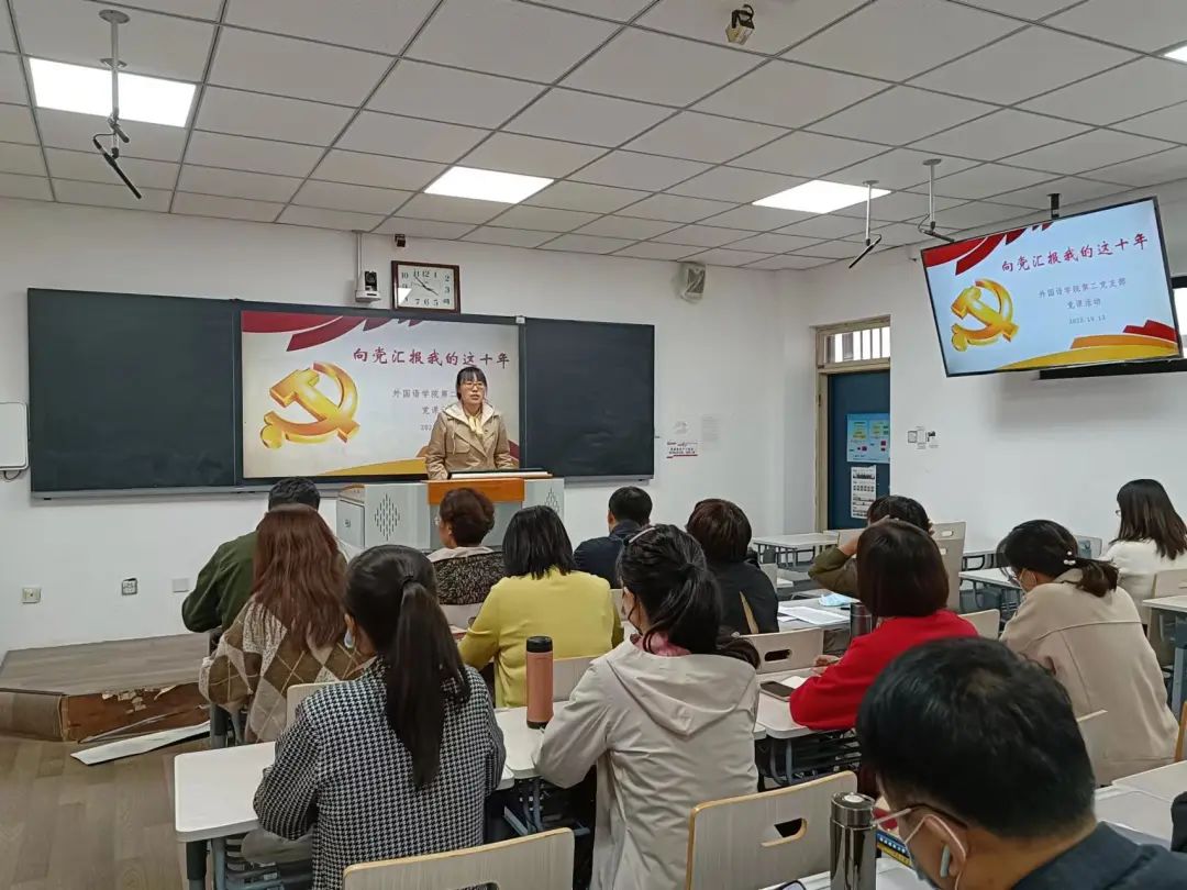 10月13日下午,伟德国际victor1946教工第二党支部在外语楼311室开展题为“向党汇报 我的这十年”专题党课活动。活动由党支部书记刘静主持,全体党员参加。
