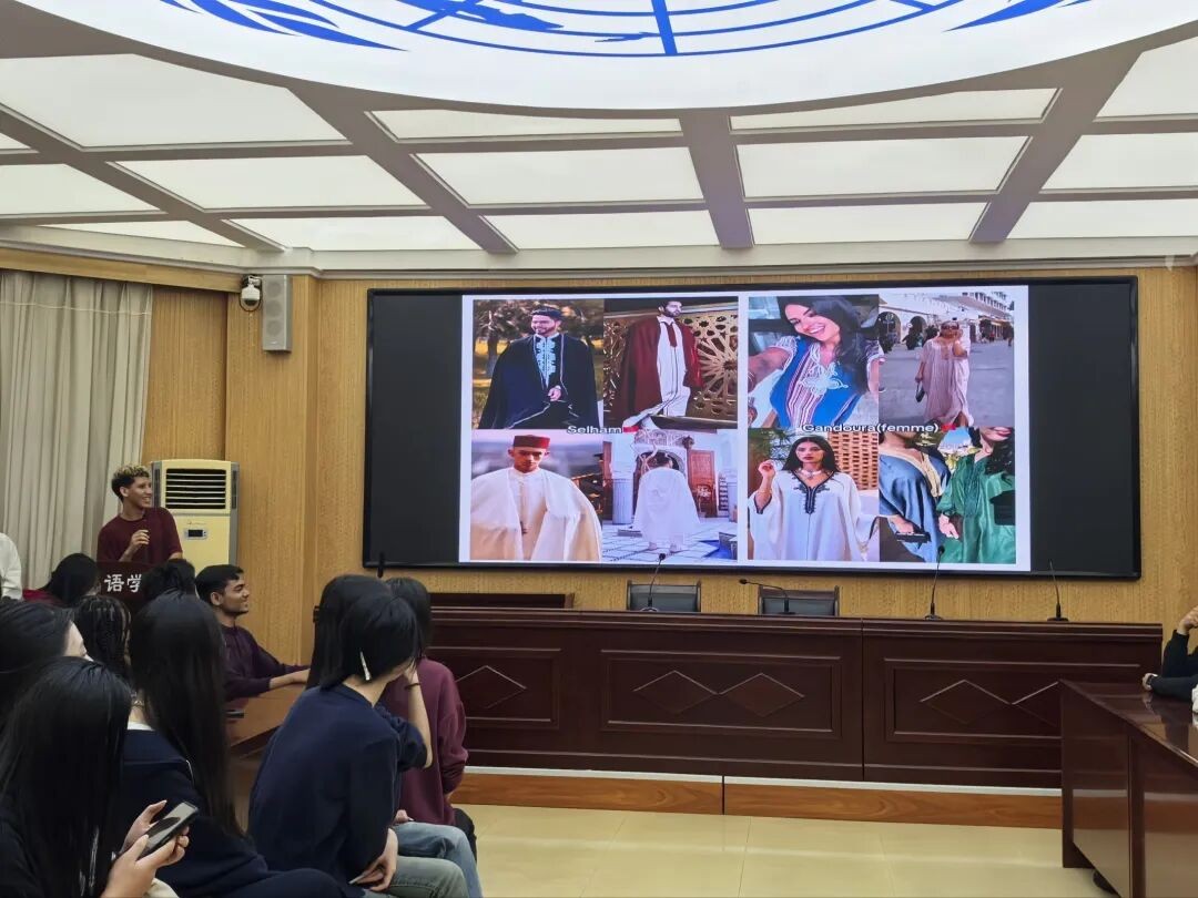 随后,沙龙进入核心环节——中西方服饰文化的碰撞与交流。我院学生代表登台,生动介绍了汉、唐、宋、清四个朝代的传统服饰演变,并展示了中国部分少数民族绚丽多彩的服饰,让在场观众领略了中华服饰文化的博大精深与时代变迁。作为回应,来自摩洛哥、巴基斯坦、孟加拉国等国的留学生同学也热情分享了各自家乡的传统服饰,从摩洛哥的飘逸长袍到巴基斯坦的精美刺绣,再到孟加拉国的特色纱丽,每一件服饰都承载着独特的文化记忆与民族风情。在这个过程中,双方不仅直观地看到了对方的服饰特色,更在深入的交流中理解了其背后的文化内涵与审美观念,真正实现了“以衣为媒,以言会友”的交际目的。