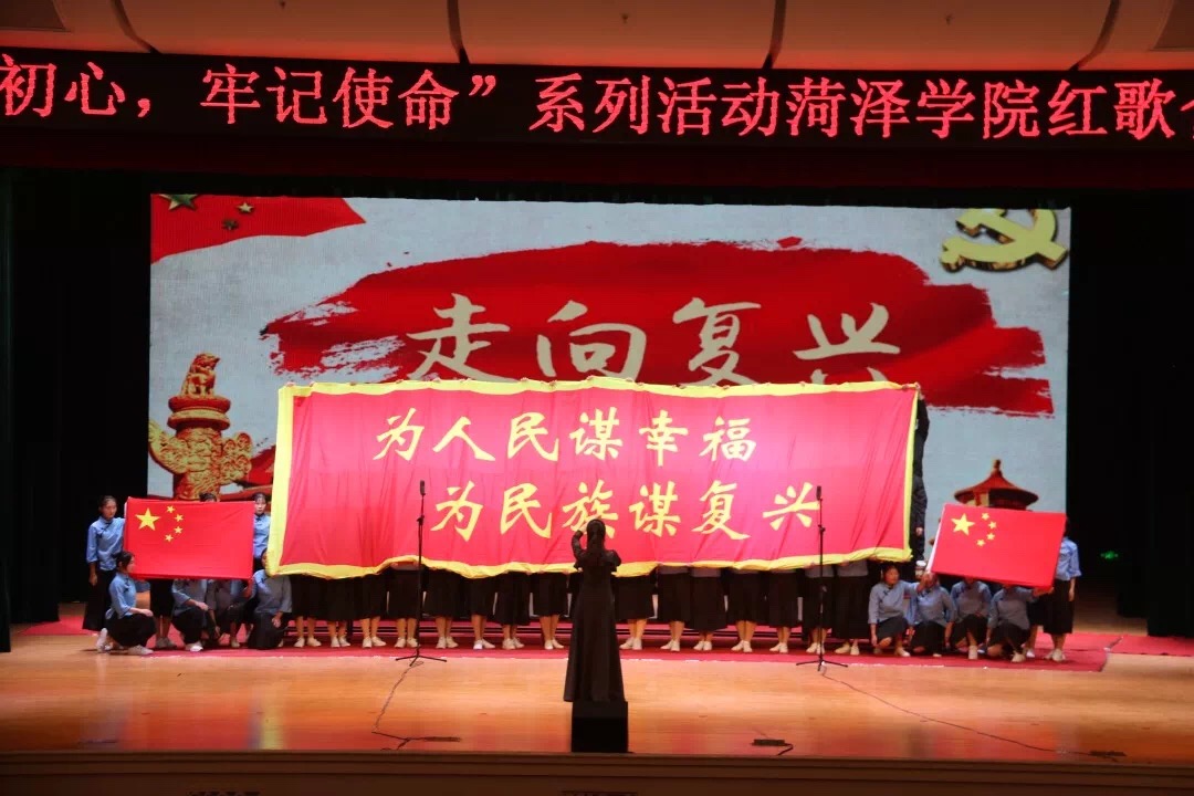 值中华人民共和国成立70周年之际,为了讴歌主旋律,弘扬正能量,宣扬新时代的伟大成就。10月25日,由我校学生工作处和校团委主办、校学生会承办的以“不忘初心、牢记使命”为主题的红歌比赛初赛在艺术中心演播厅举行。我校学生工作处副处长张华光,校团委副书记王盛楠,校团委社会实践部部长董诗彦,各二级学院、单县分校、郓城分校指导教师及各合唱队伍800余人观看本次比赛。在我院学工办主任张丽竞和辅导员曹展展的带领下,我院合唱队员90名新生参加本次红歌合唱比赛。