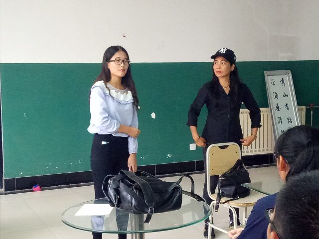 活动初始外教介绍了自己,英语角部长马晓倩在一旁做细微的解释,并让到场的学生们尽情提问问题。
