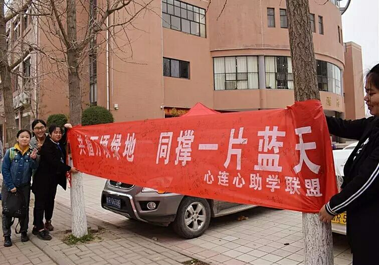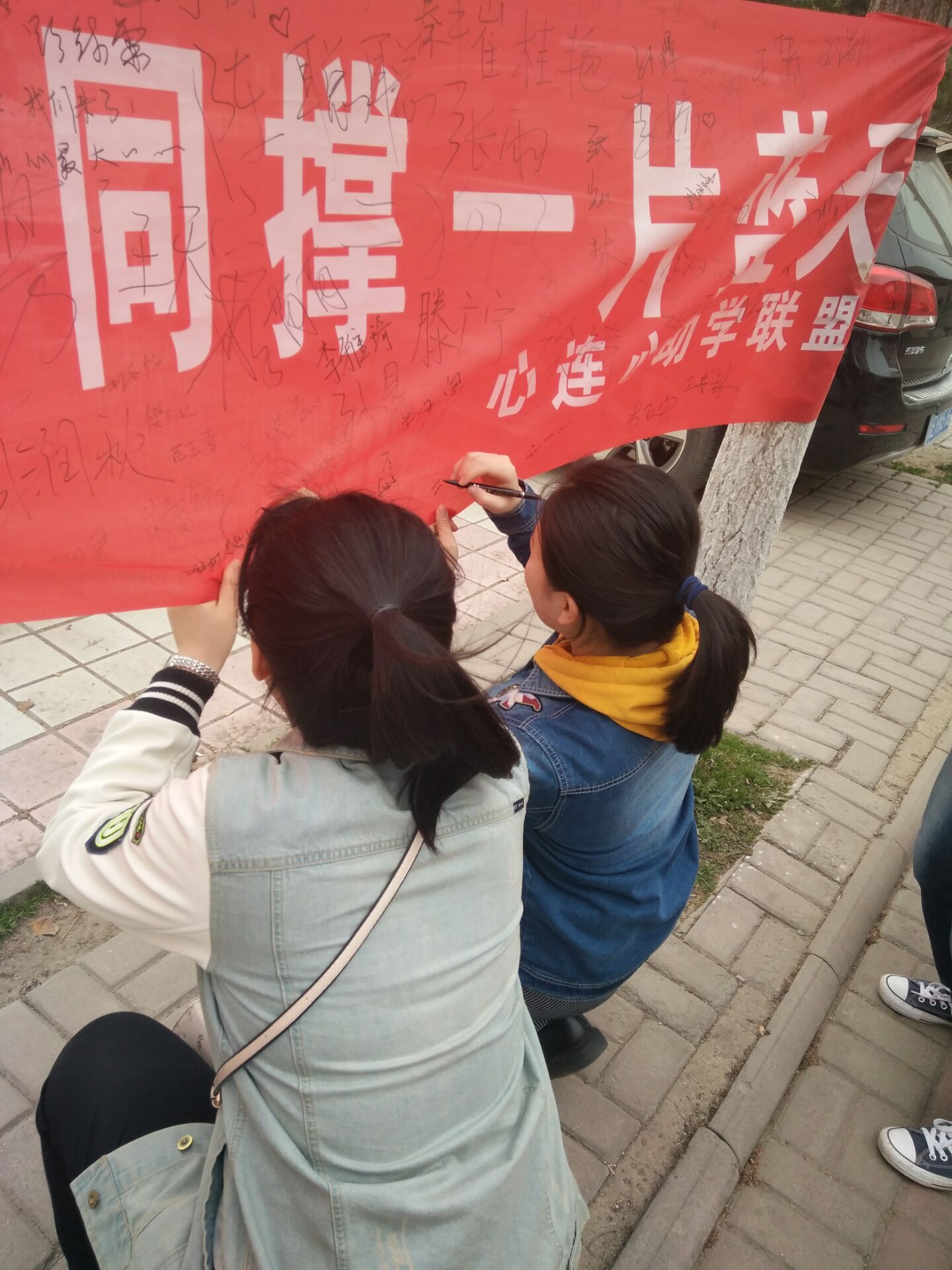 3月12日,由心连心助学联盟举办的“保护环境响应植树节”活动在雅苑广场举行,心连心助学联盟成员积极参与,号召过路的同学们在横幅上签下自己的名字,并为美化校园贡献自己的力量。