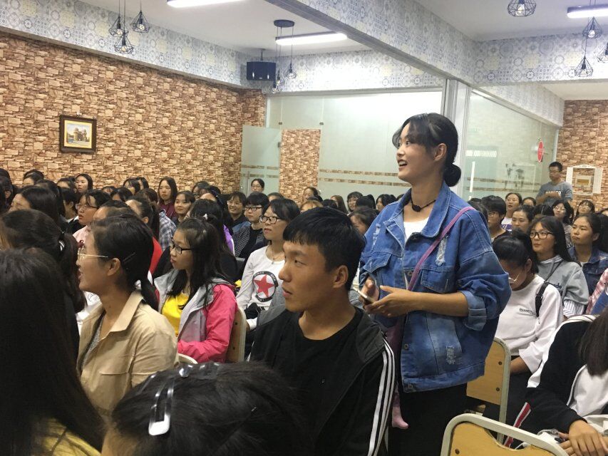 活动伊始,Paul进行英文自我介绍,由李月将较难的词汇进行翻译帮助新生进行理解。随后,Paul向学生提出一些简单问题并邀请学生向自己提问,各院新生踊跃提问、问题涉及爱好、梦想、规划,成功调动了新生的好奇、将现场气氛推向高潮。最后,Paul表示希望以更轻松、活跃的方式与学生交流,期待与学生的下次见面。