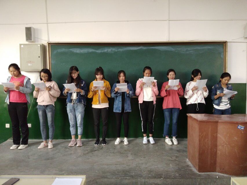 9月30日上午,由疯狂口语协会举办的七日晨读结业活动在七号楼302教室举行。疯狂口语协会主席丁洪媛担任主持,2016级英语本科二班耿婷负责领读,2018级新生共一百余人参加。