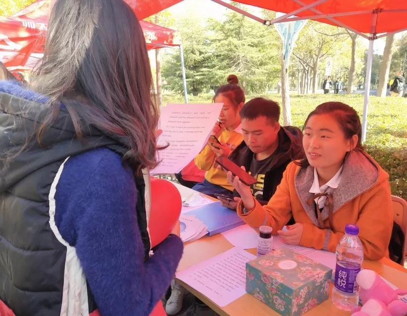 10月27、28日,由伟德victor1946团委主办,社团联合委员会承办的“百团大战”社团纳新活动在雅苑广场展开。我院英语俱乐部、心连心助学联盟、日语爱好者协会、疯狂口语协会四个社团参加本次活动。