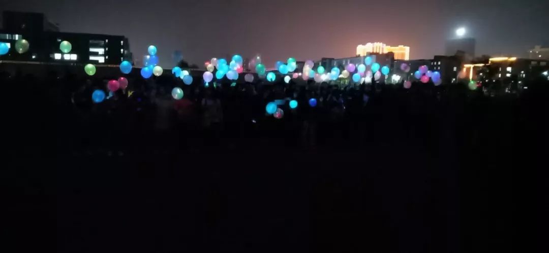 活动开始前,负责人分将荧光气球分给每位参与人员。随后,在负责人的指引下各院学生排成一队,整齐有序地站于跑道上。随着一声令下,每位同学手握气球围绕操场开始奔跑,一道美丽地夜间彩虹在田径场闪耀。夜跑过程中,大家不惧寒冷,相互鼓励,田径场上充满大家地欢声笑语。夜跑结束后,全体同学高高举起气球拍照留念。