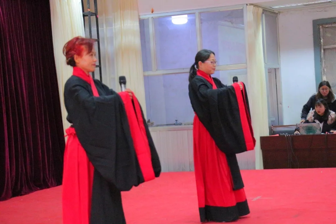 本次决赛采用独诵或群诵的朗读方式。胡玉莲和于艳芳统一身着汉服,采用配乐和PPT相结合的方式朗诵《大学》片段。胡玉莲声音洪亮、情感饱满,一句“大学之道,在明明德,在亲民,在止于至善。”在配乐的辅助下赢得观众阵阵掌声。于艳芳更是通过将声调的起伏与自然的肢体语言相结合,把自己真挚细腻的情感融入到朗诵中,获得评委们的一致好评。最后由两人共同朗诵:“物格而后知至,知至而后意诚,意诚而后心正,心正而后身修,身修而后家齐,家齐而后国治,国治而后天下平。”表达了完善自我的人生理想,将现场气氛推向高潮。经过激烈的角逐,我院教师胡玉莲、于艳芳朗诵的《大学》片段荣获三等奖。